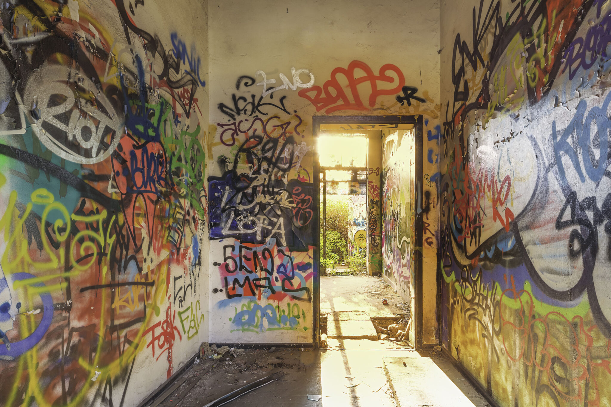 Während meiner Erkundung begegnete ich mehreren Graffiti-Künstlern, die gerade dabei waren, neue Kunstwerke zu schaffen. Eine kleine Gruppe von Jugendlichen hatte sich eine Ecke der Halle als improvisierten Treffpunkt eingerichtet, ein paar alte Stühle und Tische standen herum. Auf einem der Wände prangten Poster alter Filme, was dem Ort eine fast heimelige, aber dennoch surreale Stimmung verlieh.