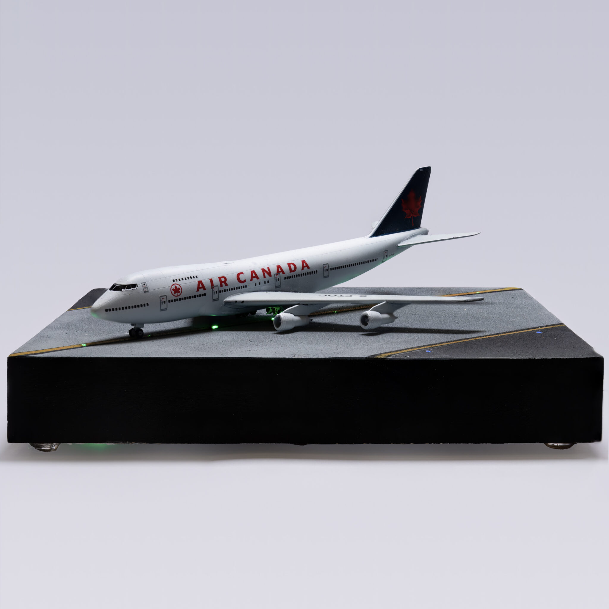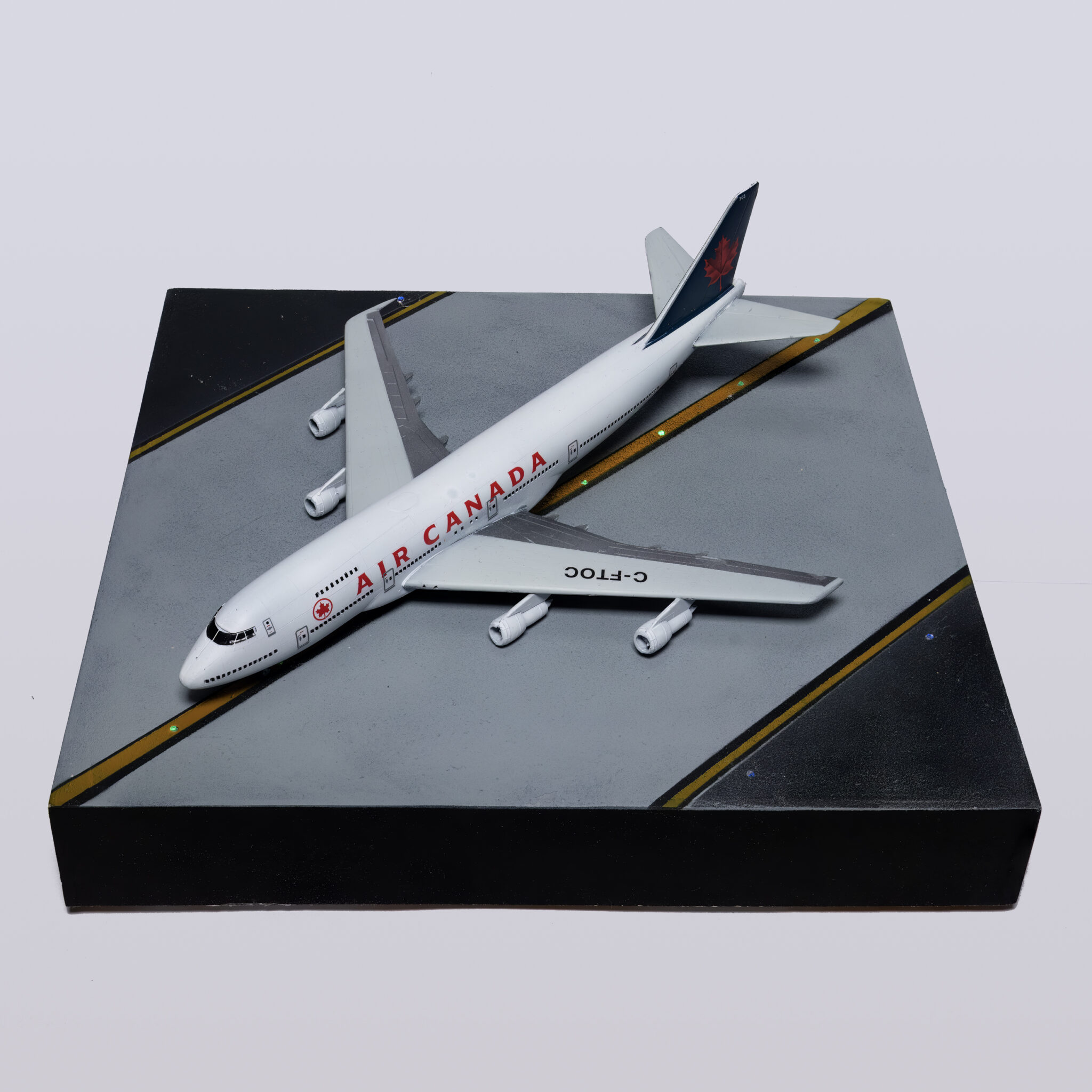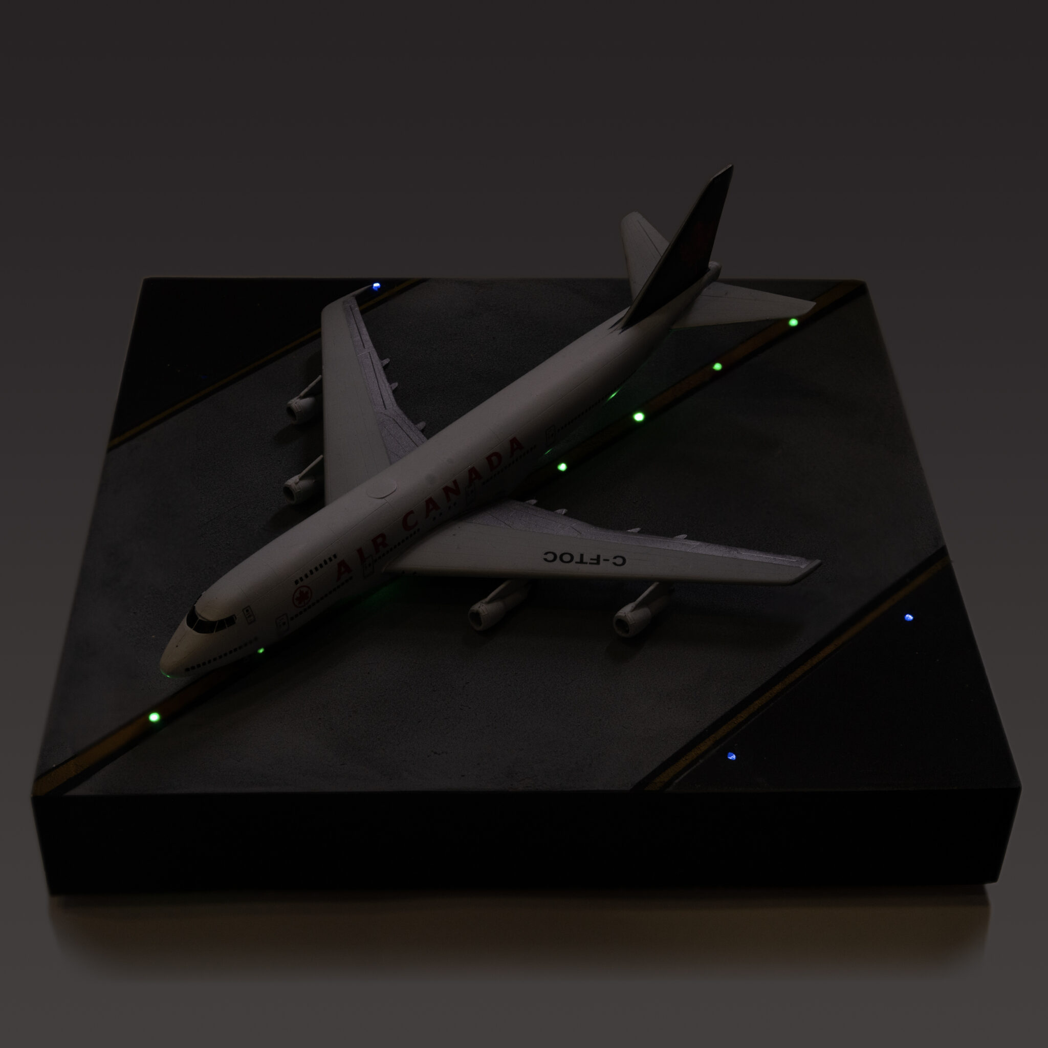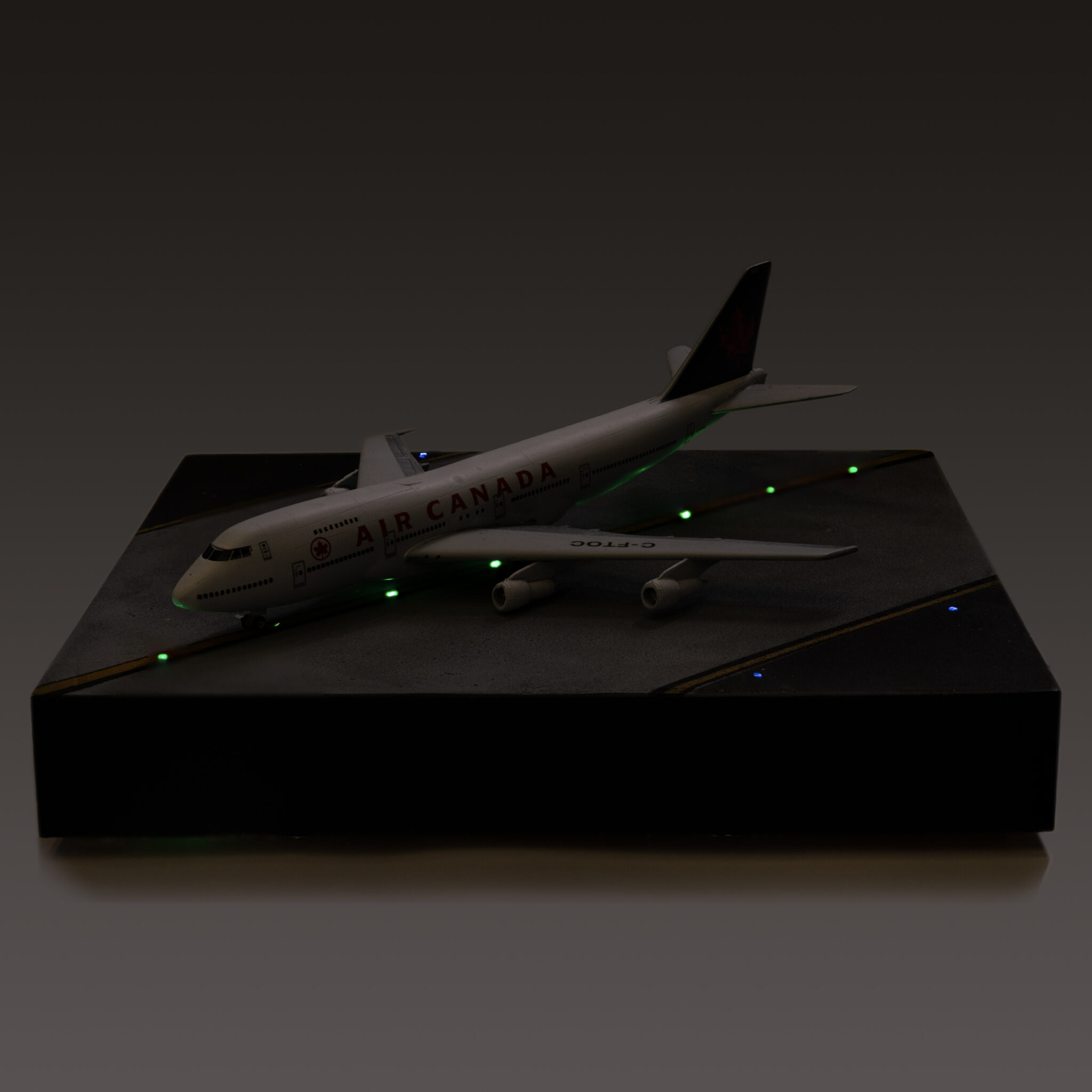 Die Qualität der Gussteile ließ zu wünschen übrig – eine Tatsache, die mich zwang, mehr Zeit und Energie zu investieren, als ich ursprünglich geplant hatte. Statt eines einfachen Zusammenbaus entstand so Schritt für Schritt ein komplettes Rollfeld-Diorama, beleuchtet, als stünde die Maschine kurz vor dem Start in den nächtlichen Himmel, genauso wie sie es in ihrer Blütezeit bei Air Canada getan hätte.
