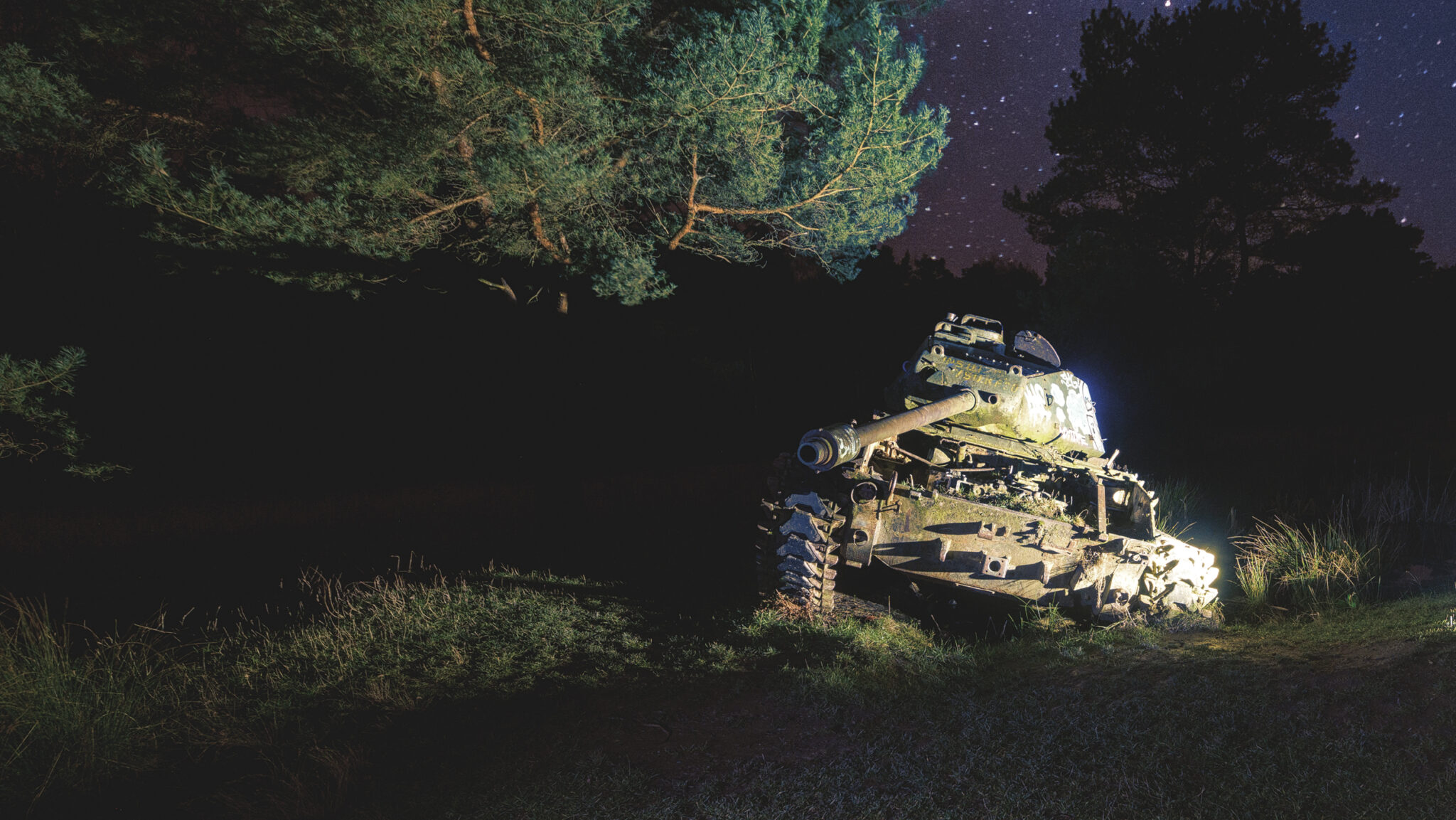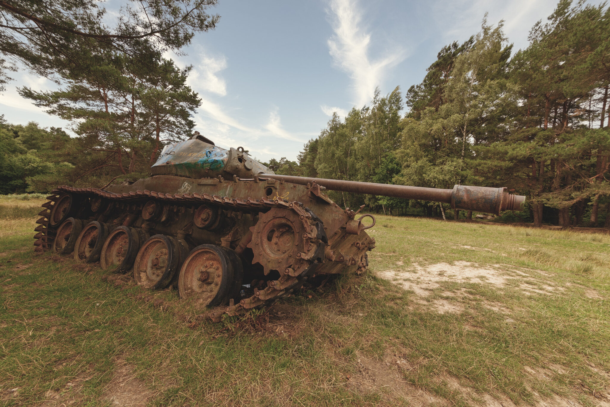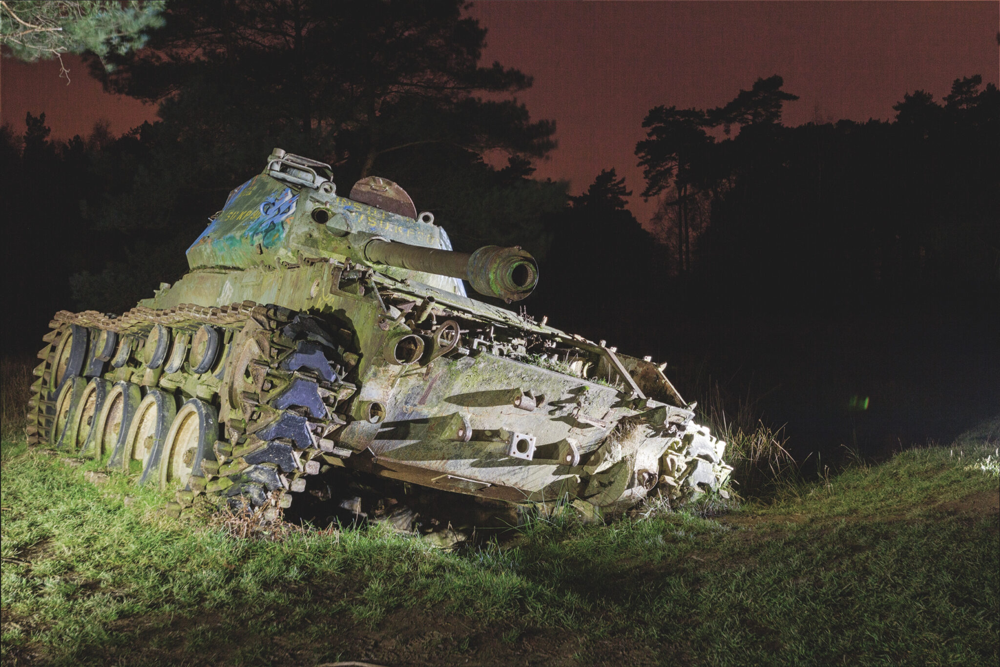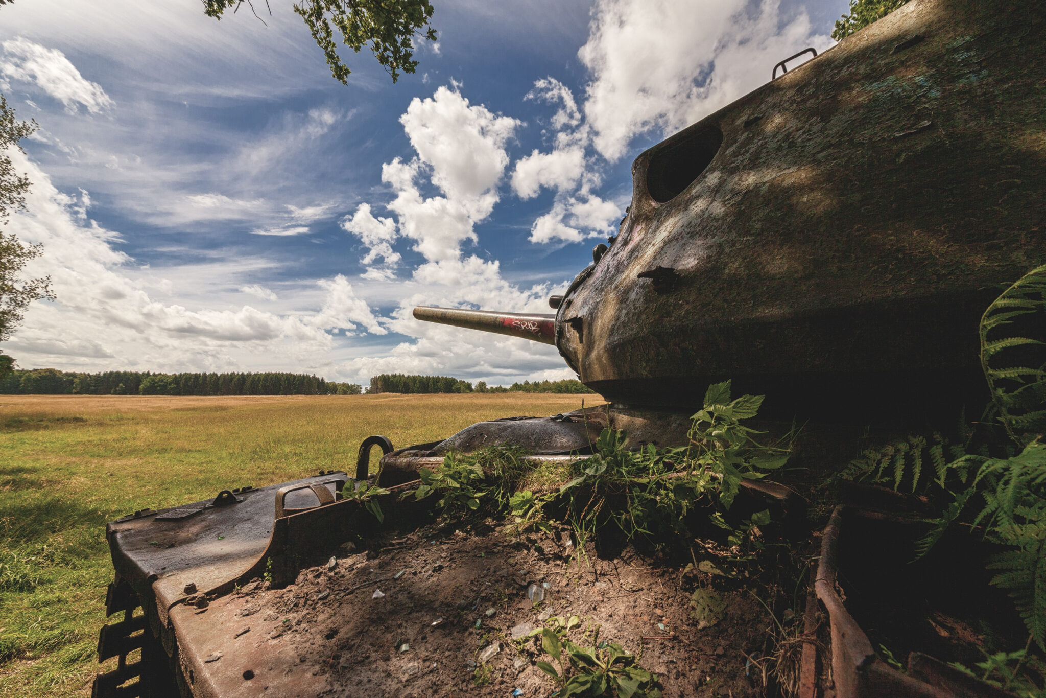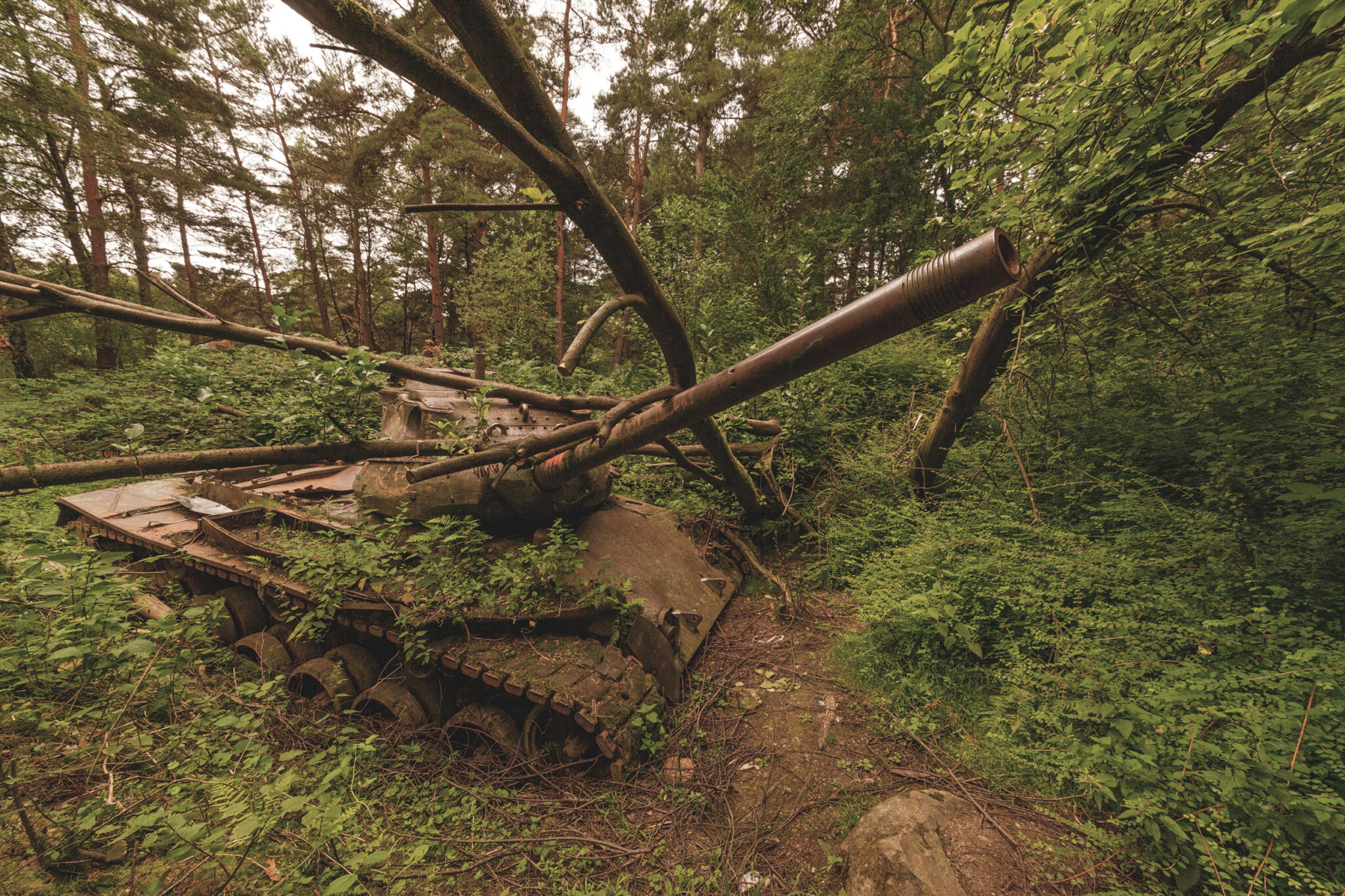 Es ist eine bizarre Szenerie: die gewaltigen Metallkolosse, überwuchert von Gras und Moos, bemalt mit dem Graffiti der Zeit, festgehalten in der Ewigkeit eines stillen Waldfriedhofs. Hier finden sich Motive, die so selten sind, dass sie fast surreal wirken. Jeder Rostfleck erzählt eine eigene Geschichte, jedes durchlöcherte Panzerblech birgt ein Geheimnis.