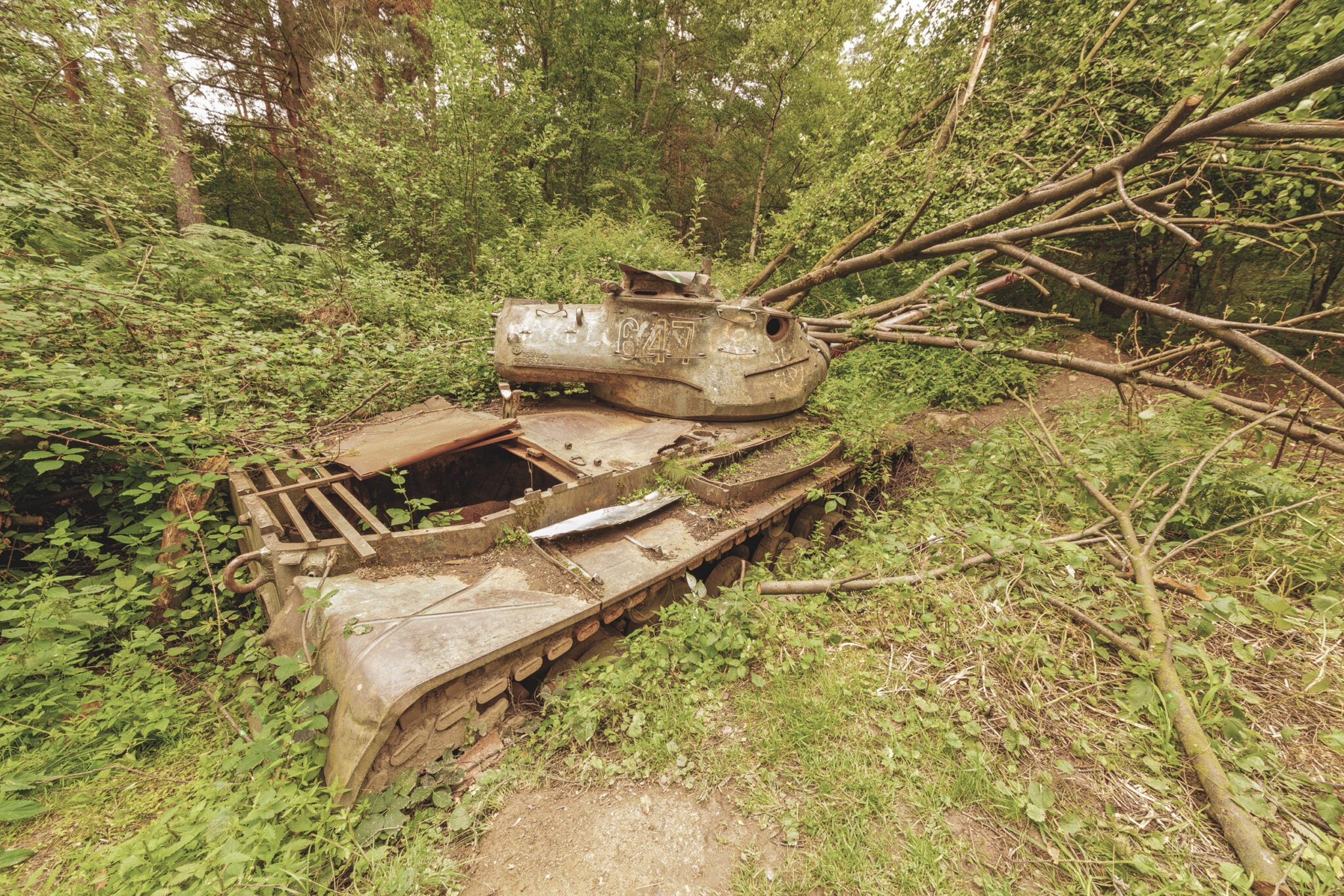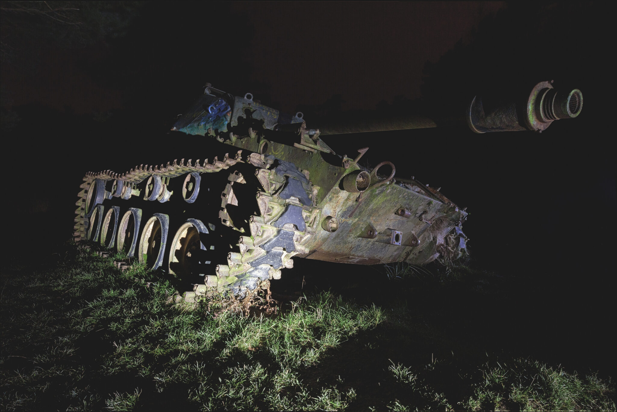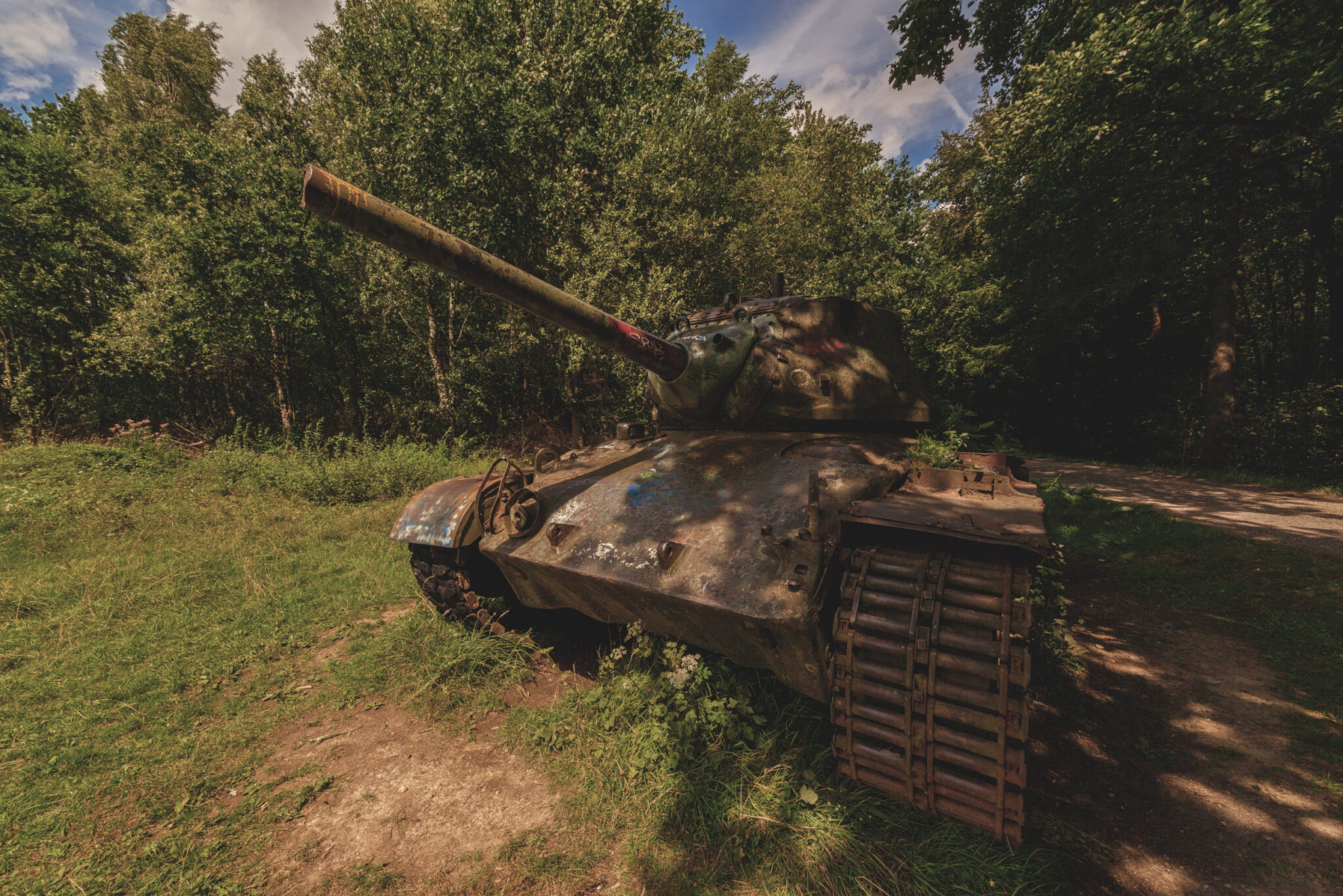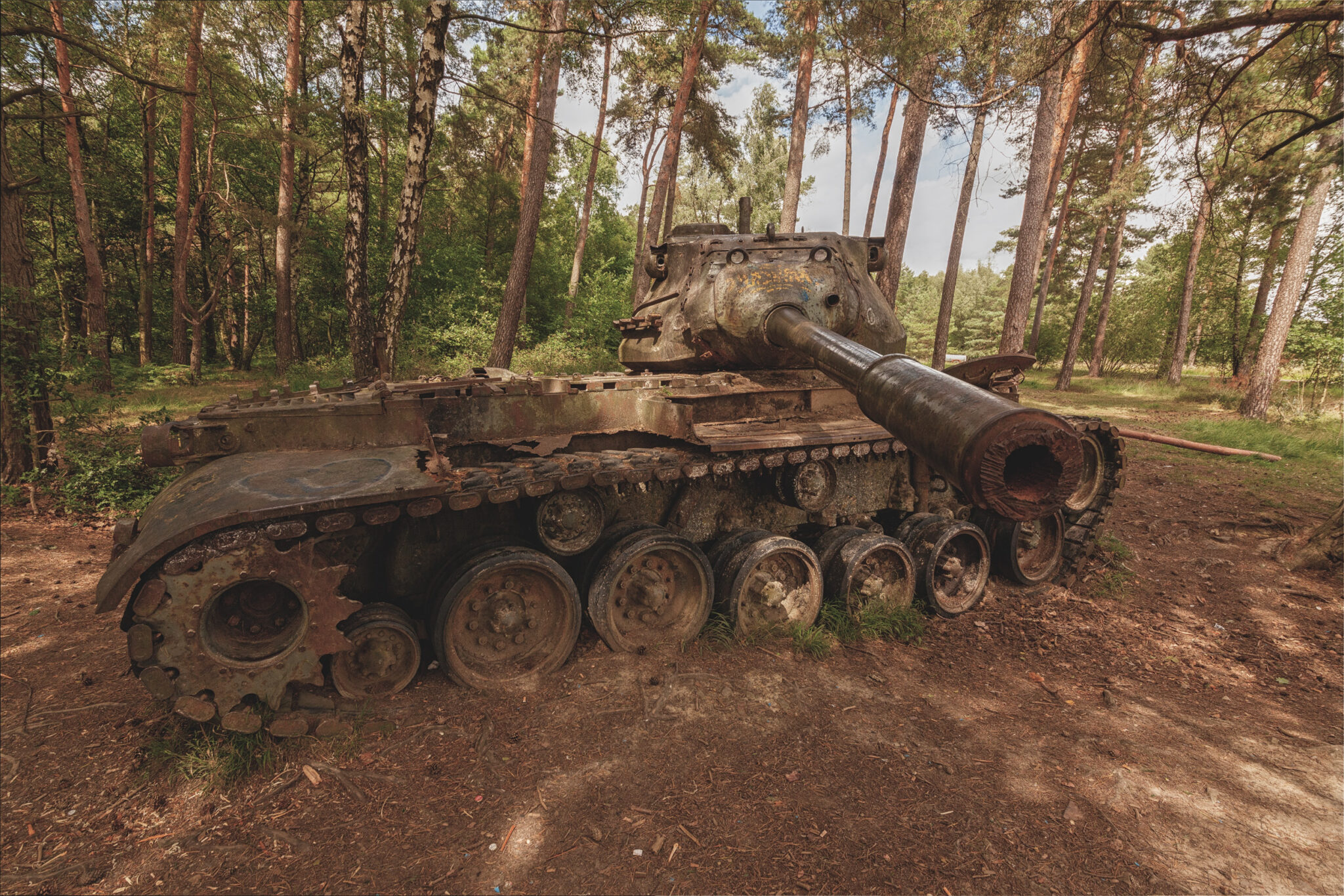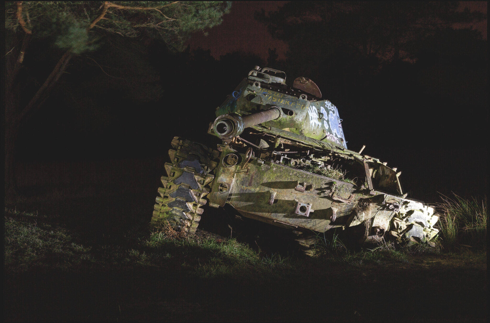 Es ist eine bizarre Szenerie: die gewaltigen Metallkolosse, überwuchert von Gras und Moos, bemalt mit dem Graffiti der Zeit, festgehalten in der Ewigkeit eines stillen Waldfriedhofs. Hier finden sich Motive, die so selten sind, dass sie fast surreal wirken. Jeder Rostfleck erzählt eine eigene Geschichte, jedes durchlöcherte Panzerblech birgt ein Geheimnis.