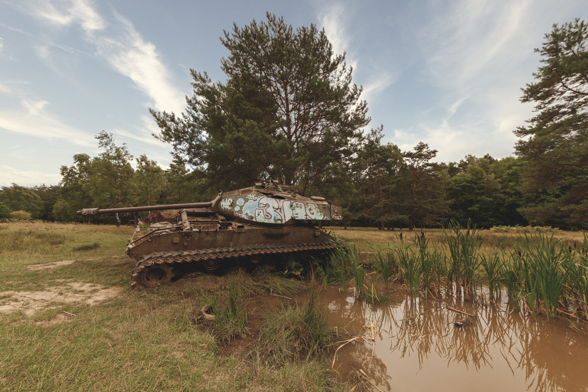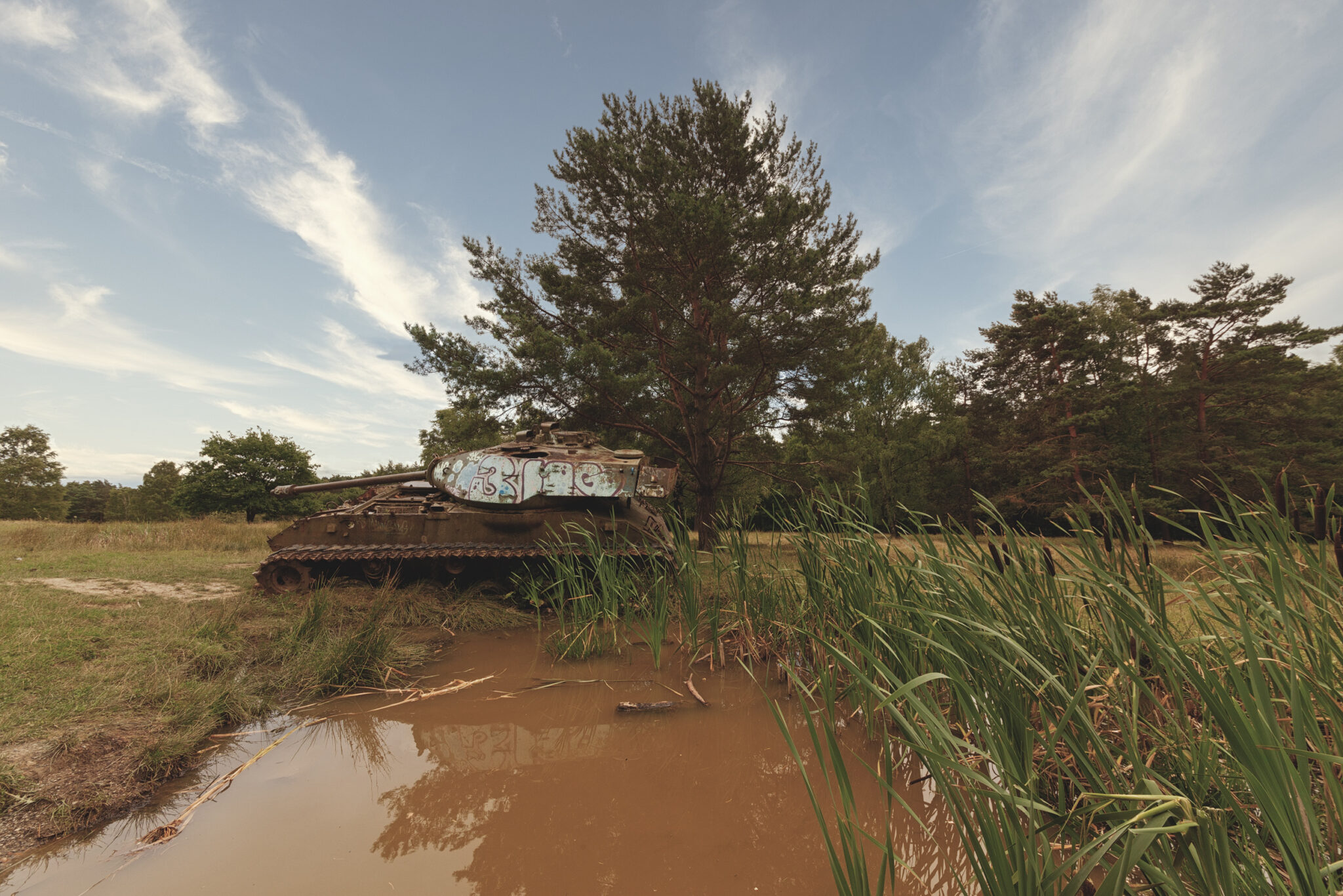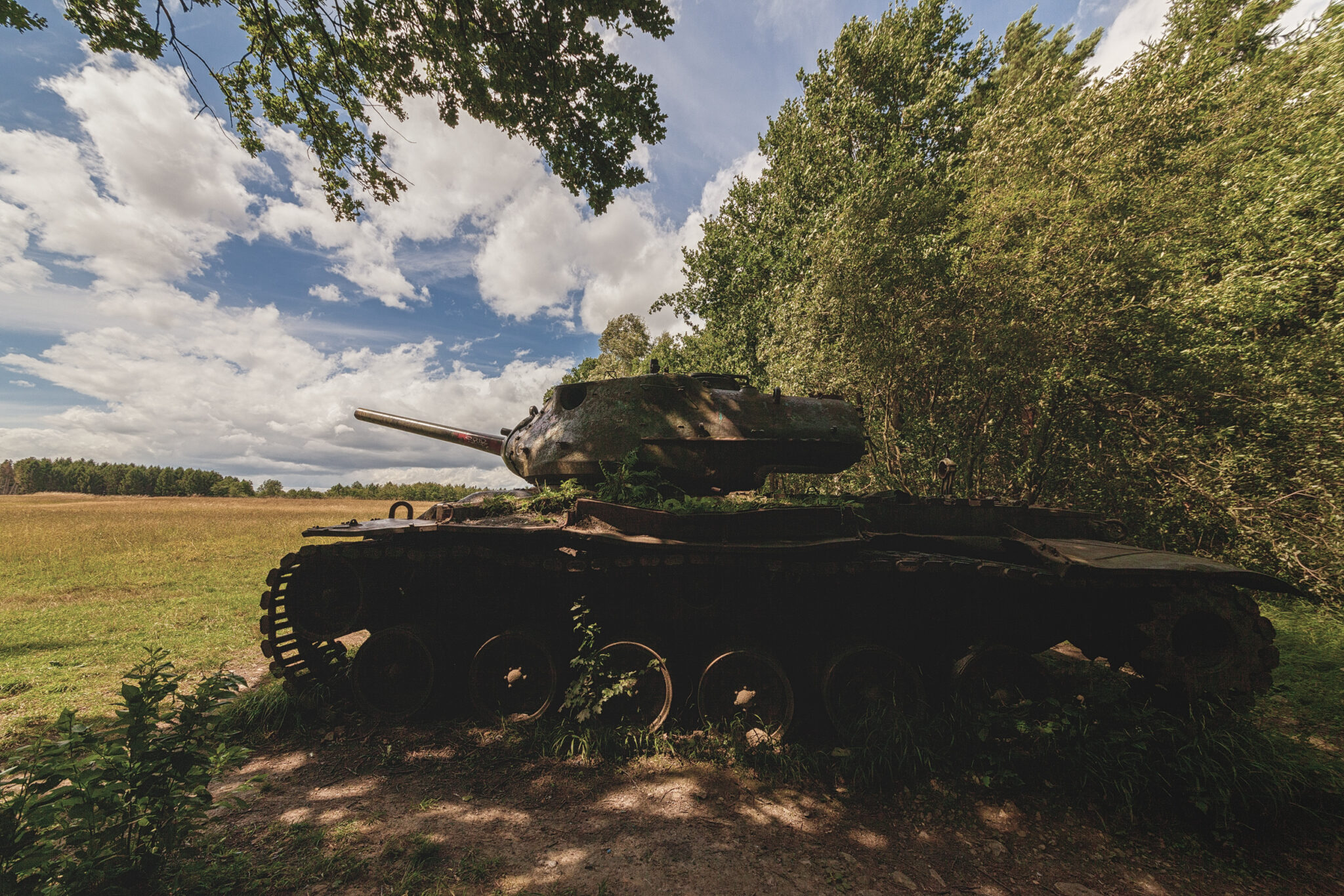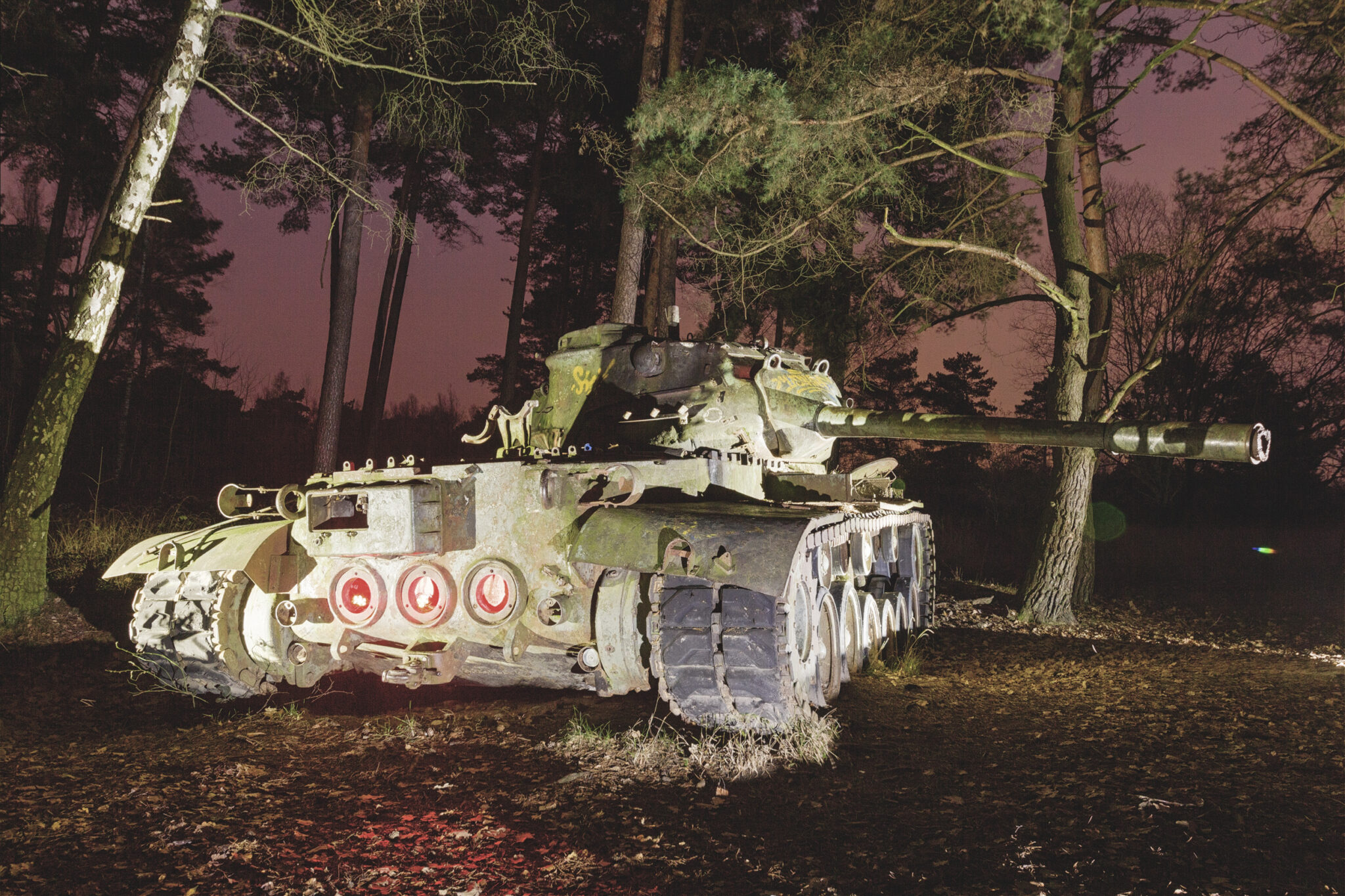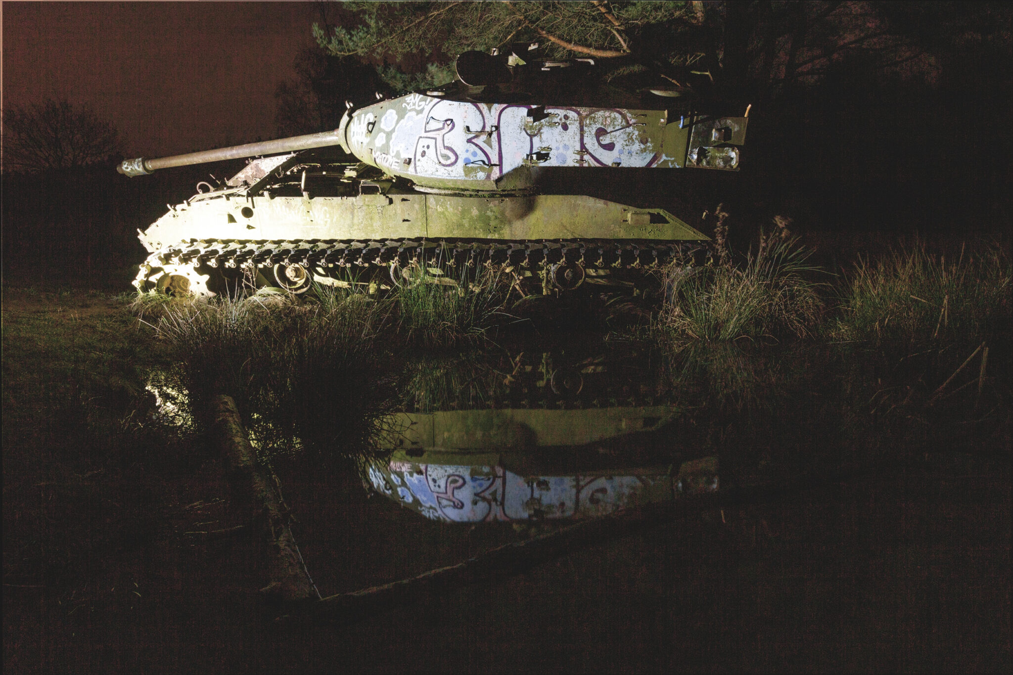 Es ist eine bizarre Szenerie: die gewaltigen Metallkolosse, überwuchert von Gras und Moos, bemalt mit dem Graffiti der Zeit, festgehalten in der Ewigkeit eines stillen Waldfriedhofs. Hier finden sich Motive, die so selten sind, dass sie fast surreal wirken. Jeder Rostfleck erzählt eine eigene Geschichte, jedes durchlöcherte Panzerblech birgt ein Geheimnis.