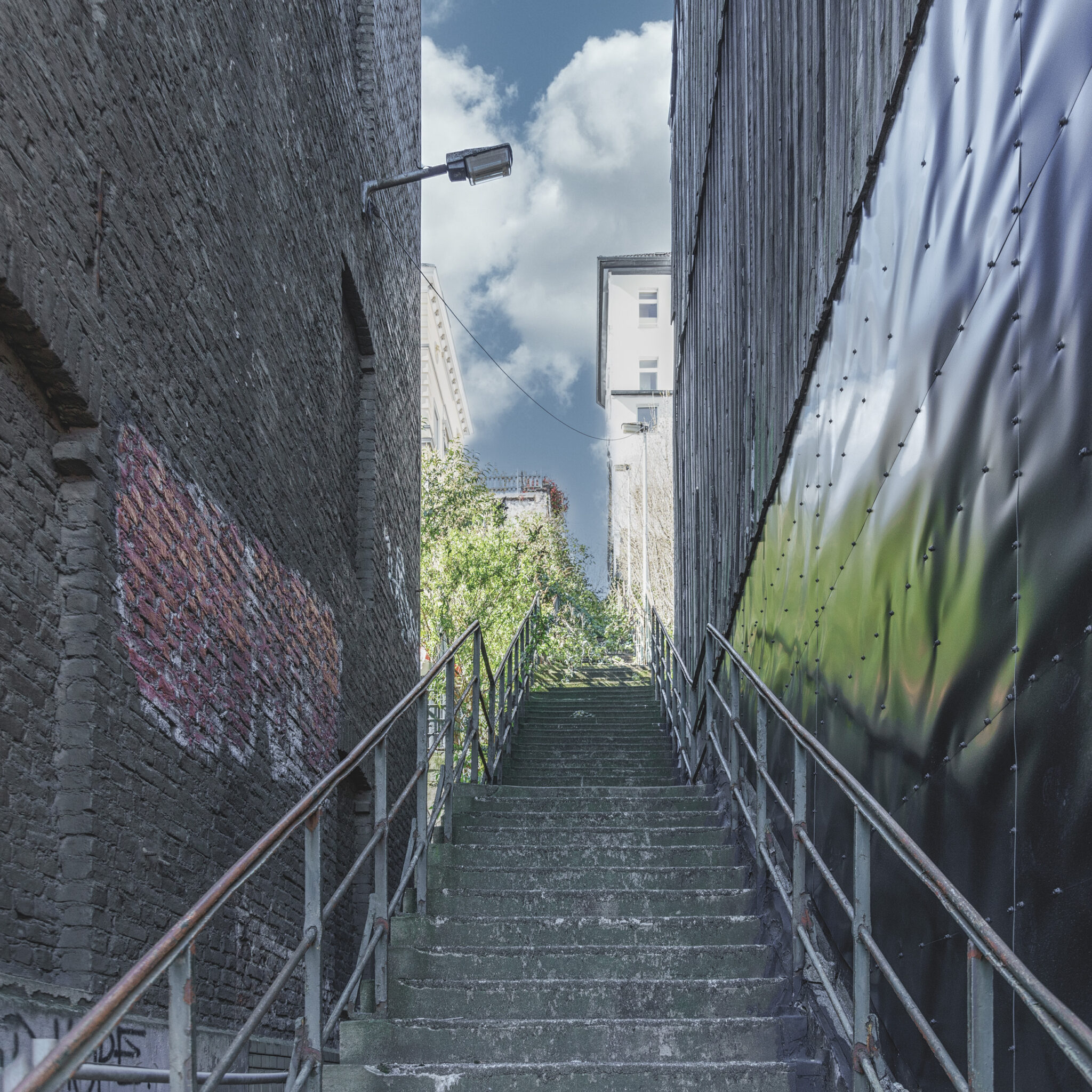 Da die Jakobstreppe für uns nicht zugänglich war, entschieden wir uns, über die Treppenstraße zur Nützenberger Straße hinaufzusteigen. Die Treppenstraße, wie viele andere in Wuppertal, führt steil hinauf und bietet einen atemberaubenden Blick auf das Tal. Der Weg nach oben war anstrengend, aber der Blick auf die Stadt und das Viertel belohnte uns für die Mühen. Es war eine Reise durch die Geschichte, als wir an den alten Häusern vorbeigingen, die von den Höhen und Tiefen der Stadt erzählten.