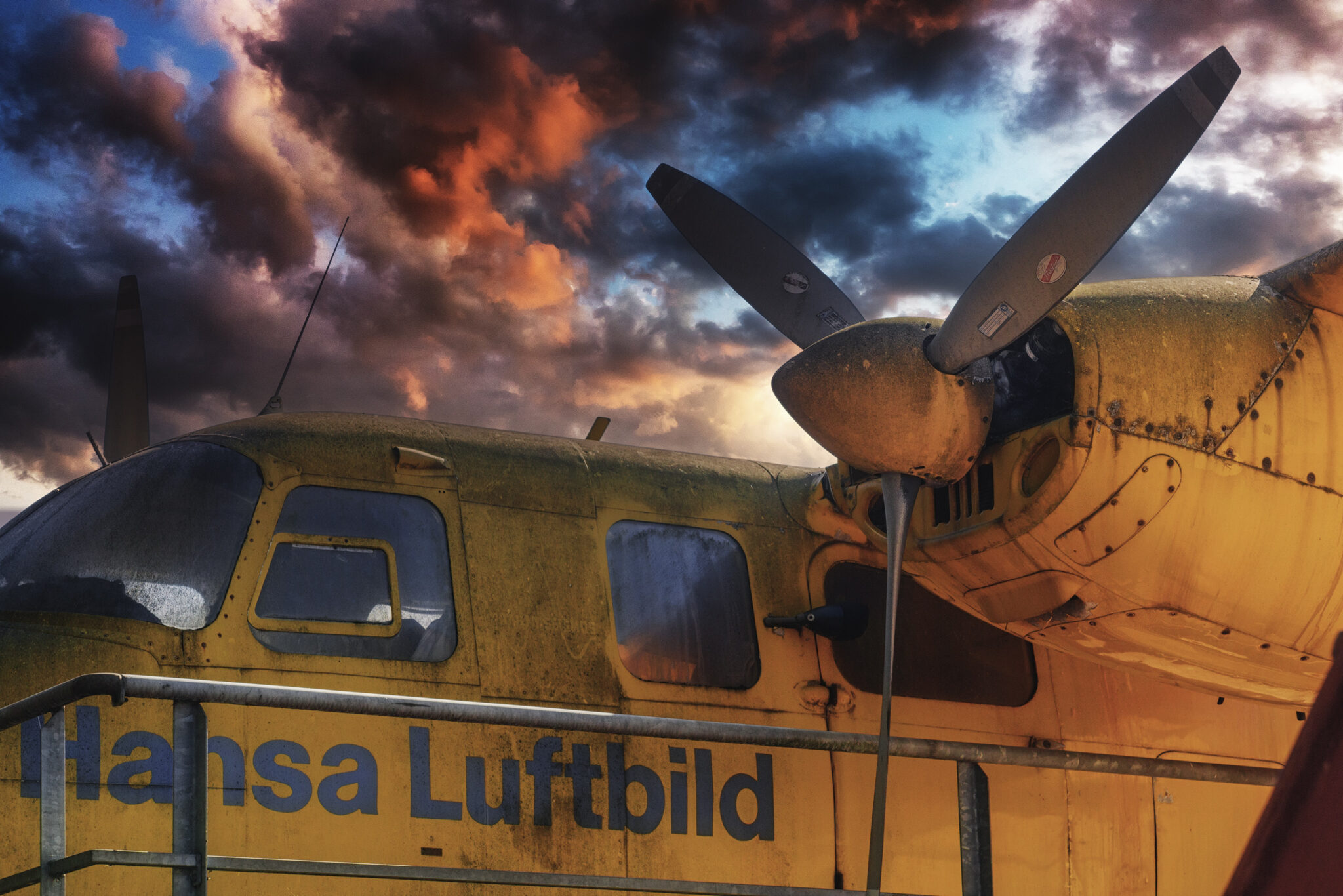 Ein Stück weiter entdecke ich den Aero Commander 680E, ein Flugzeug, das einst für zivile Luftbildaufnahmen genutzt wurde. Mit seiner markanten gelben Lackierung und der Aufschrift „Hansa Luftbild“ erinnert es an eine Zeit, in der solche Flugzeuge dazu dienten, Karten zu erstellen und geografische Daten aus der Luft zu sammeln. Der Aero Commander war ein zuverlässiges Flugzeug, das in der Lage war, weite Strecken zu fliegen und hochauflösende Bilder aus der Luft zu liefern. Seine Reichweite von etwa 2.500 Kilometern machte ihn ideal für lange Einsätze in der Kartografie und Luftbildfotografie.