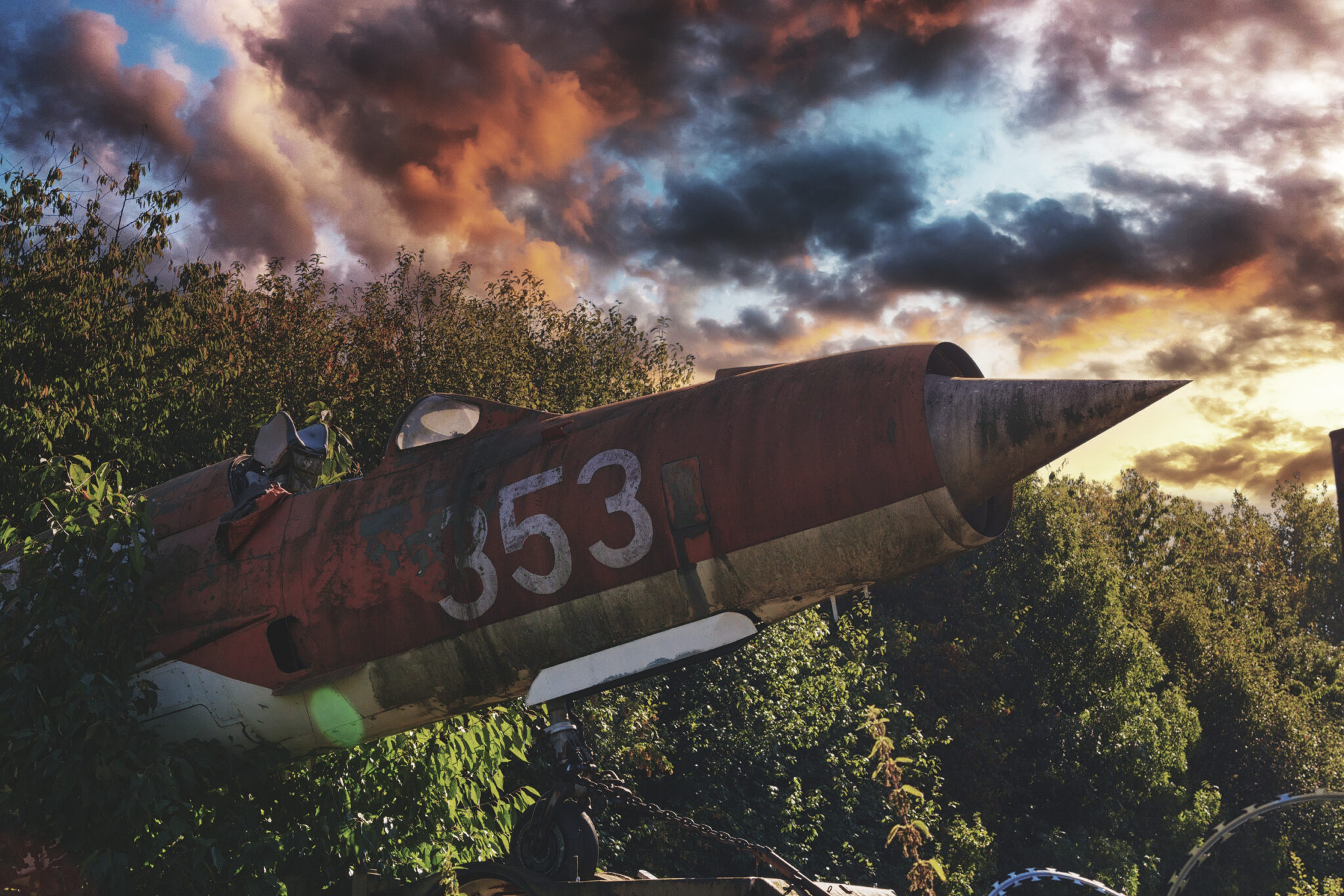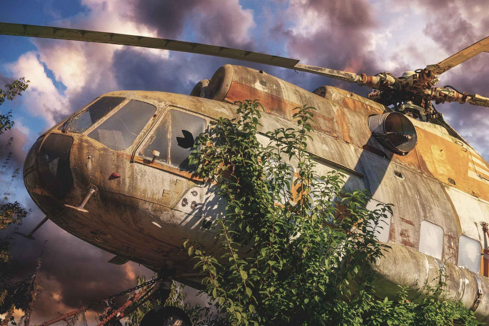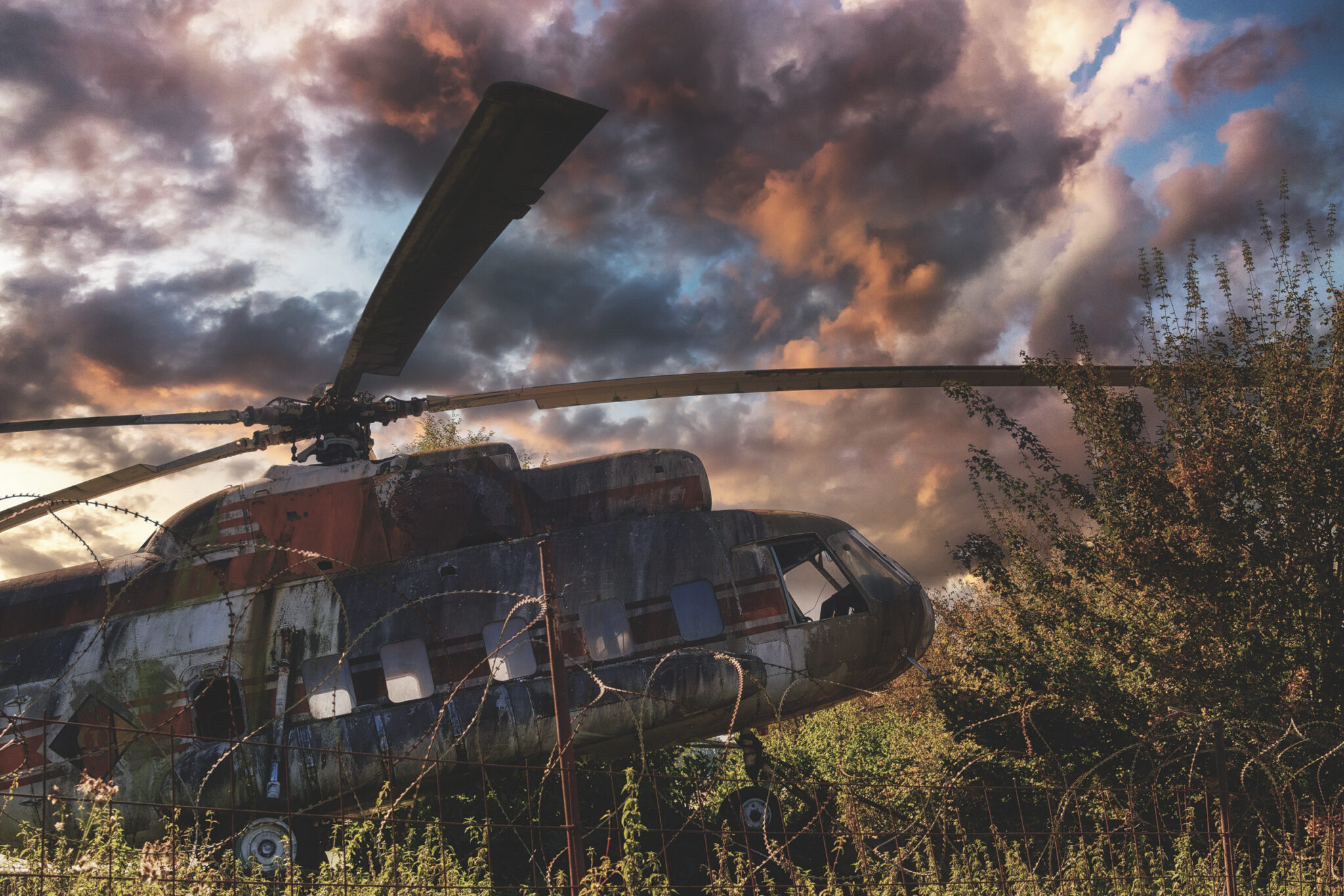 Heute steht das Gelände leer. Verwitterte Flugzeuge, Hubschrauber und Militärfahrzeuge liegen verstreut auf dem Areal, während die Natur langsam Besitz von ihnen ergreift. Efeu und Unkraut wuchern über die alten Maschinen, der Rost nagt unaufhörlich an den Metallkonstruktionen. Der Verfall ist unübersehbar – und doch ist er von einer besonderen, fast erhabenen Schönheit geprägt.