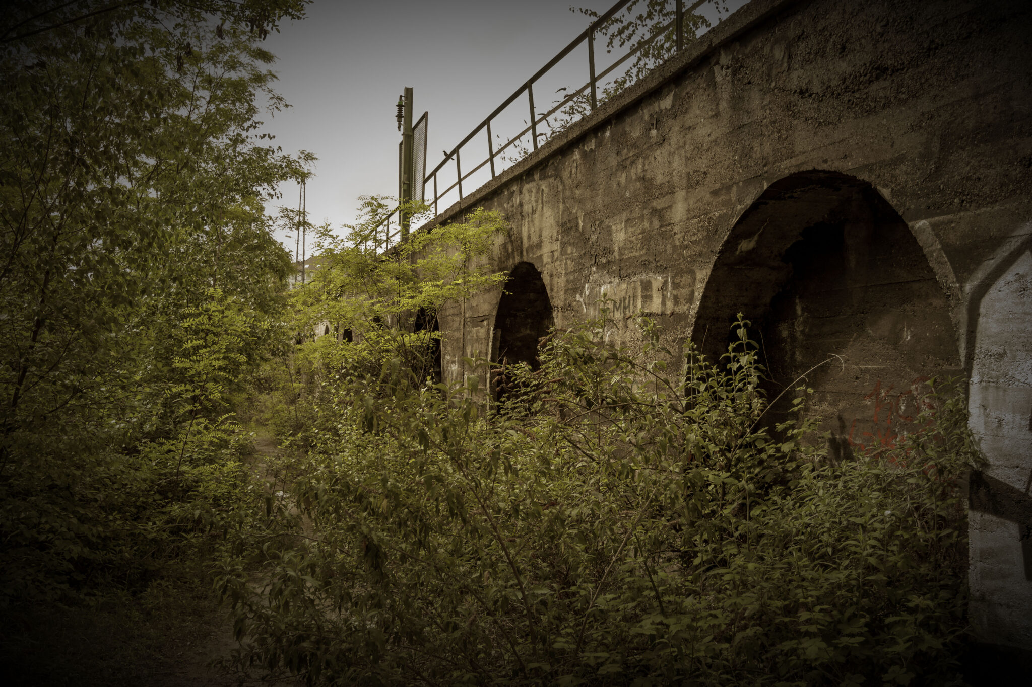 Der Zugang zu diesem verborgenen Relikt war unscheinbar und unspektakulär. Doch je tiefer ich in diese Welt aus Beton und Gestrüpp vordrang, desto mehr verstummte die Welt um mich herum. Eine fast greifbare Stille breitete sich aus, durchbrochen nur vom fernen Echo eines vorbeiziehenden Zuges. Besonders prägend war ein monumentales Jesus-Graffiti, das unter einem der Betonbögen thronte. Die künstlerische Darstellung wirkte wie ein stiller Segen für diesen geheimnisvollen Ort, während die Natur unaufhaltsam begann, die steinernen Mauern und eisernen Schienen in ihr Reich zurückzuholen. Grünes Blattwerk und zarte Ranken schienen hier genauso Teil der Geschichte zu sein wie der rostige Stahl.