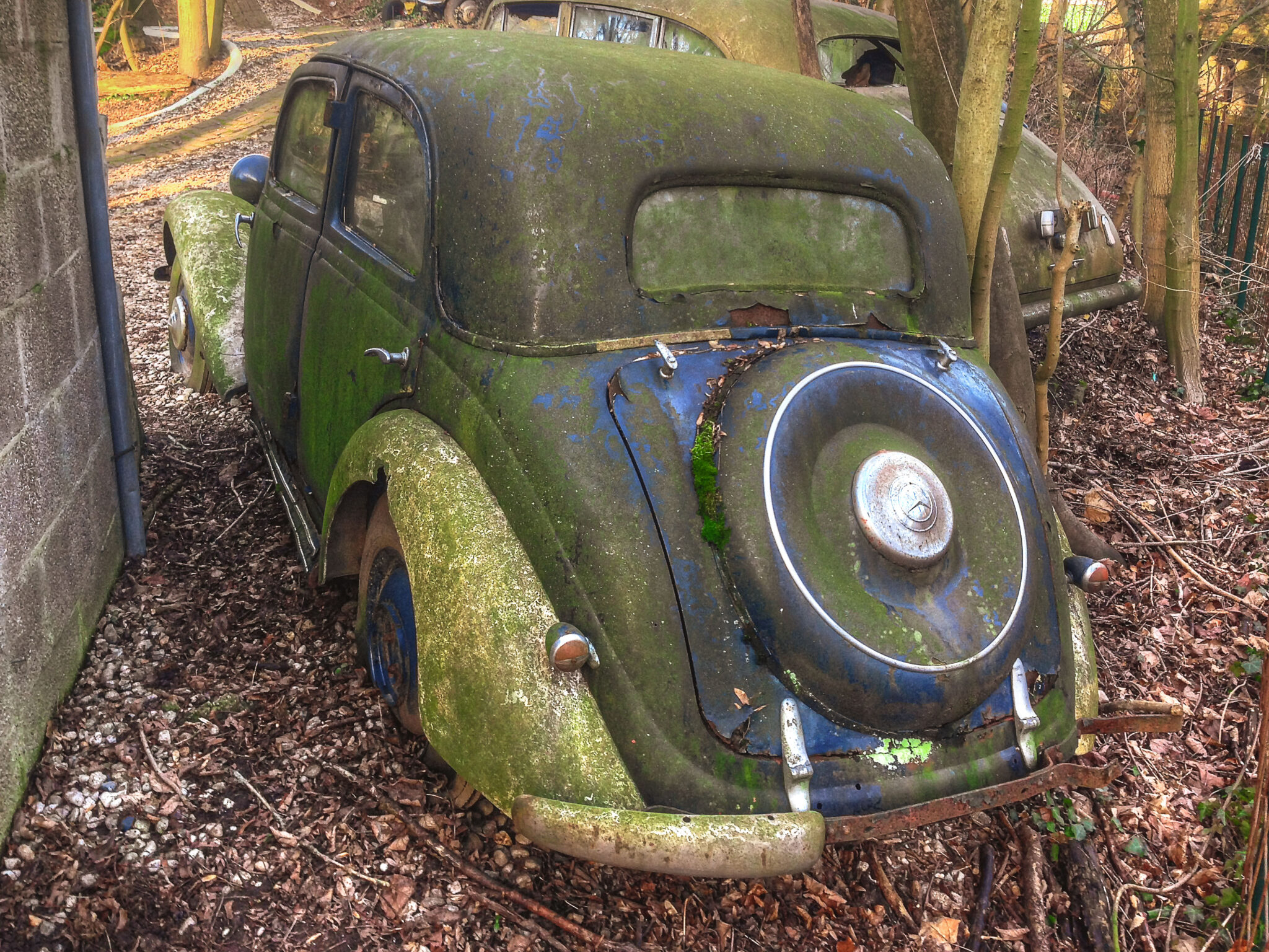 Verfallene Oldtimer als Zeitkapsel im Wald