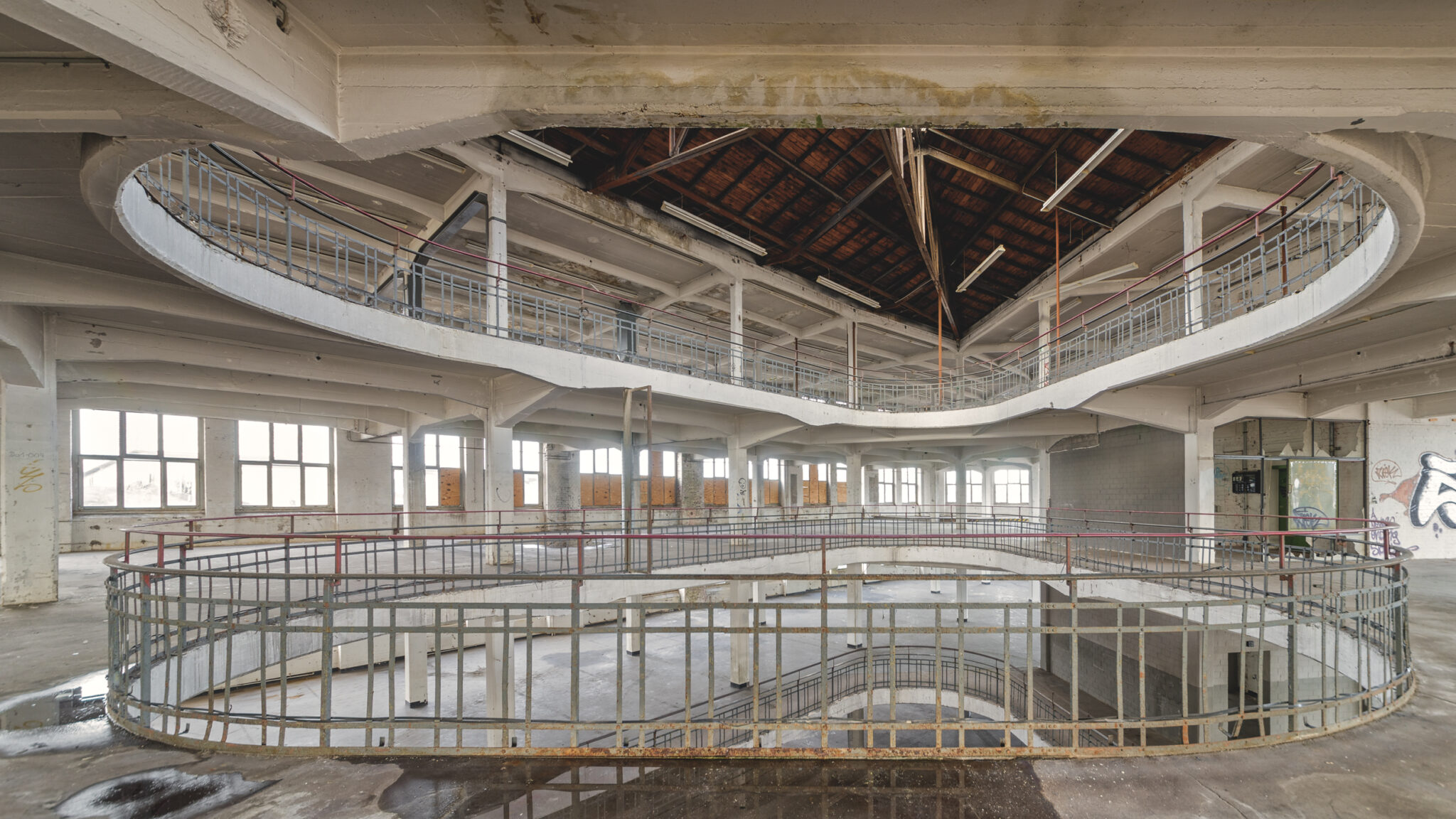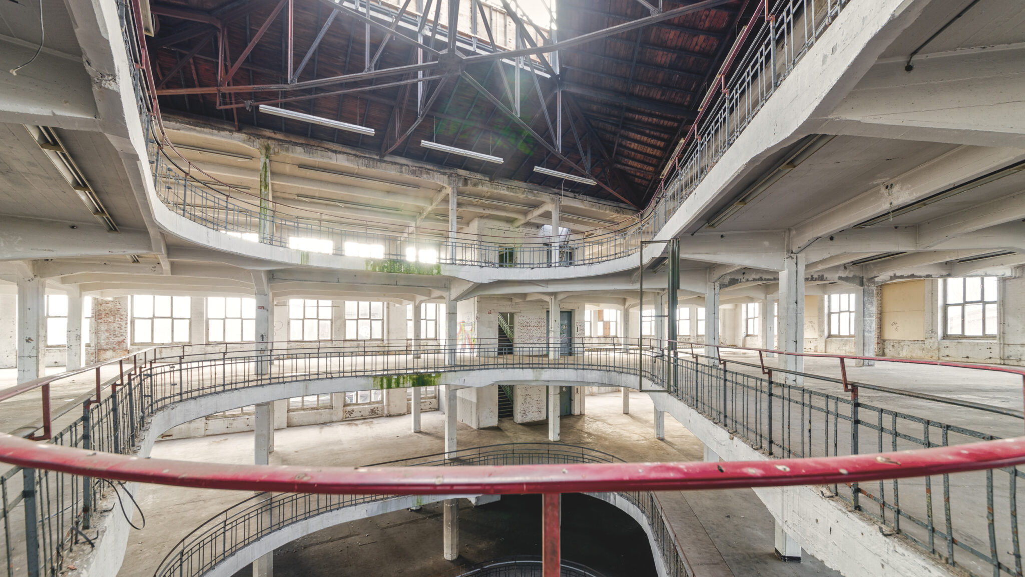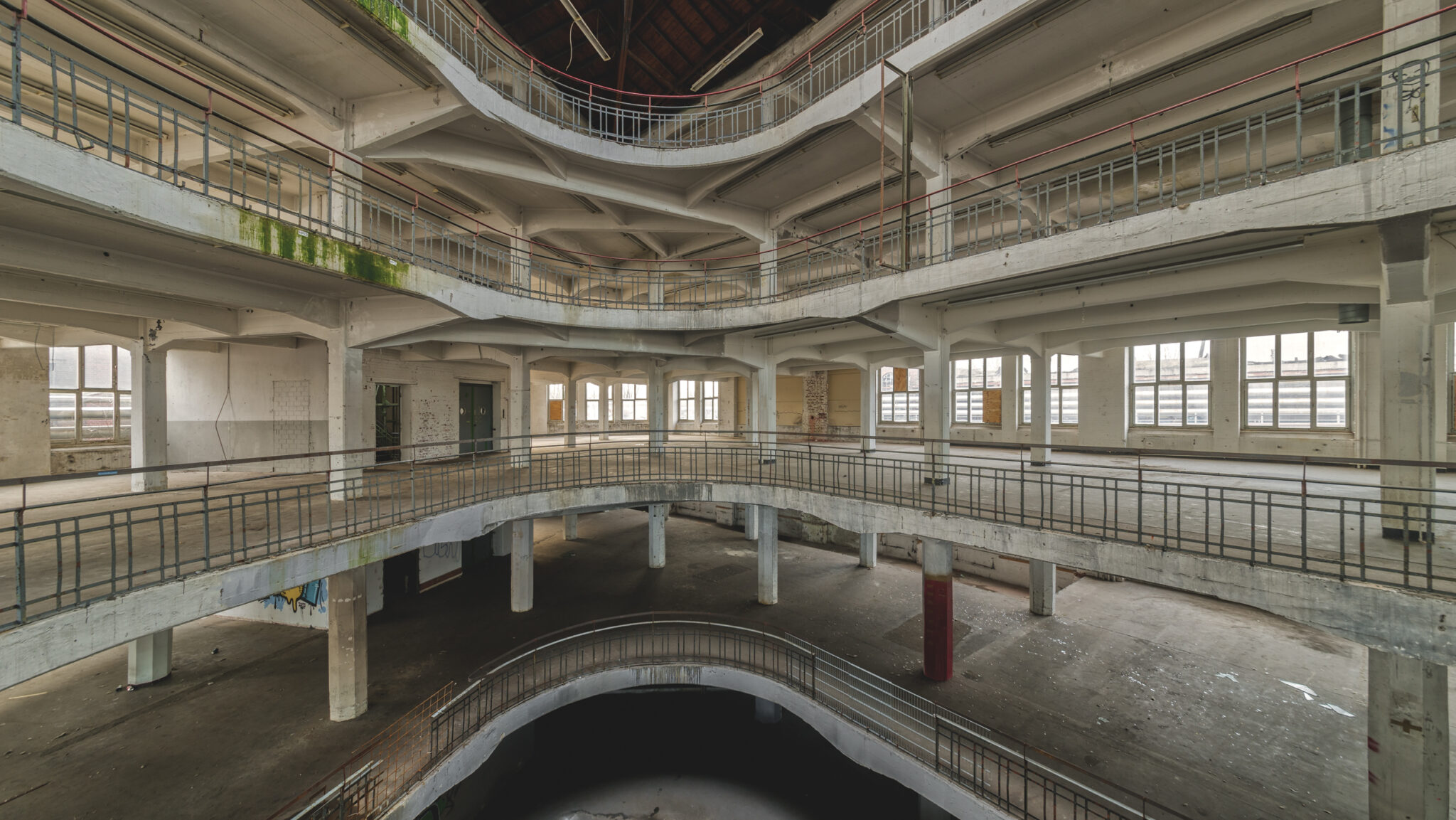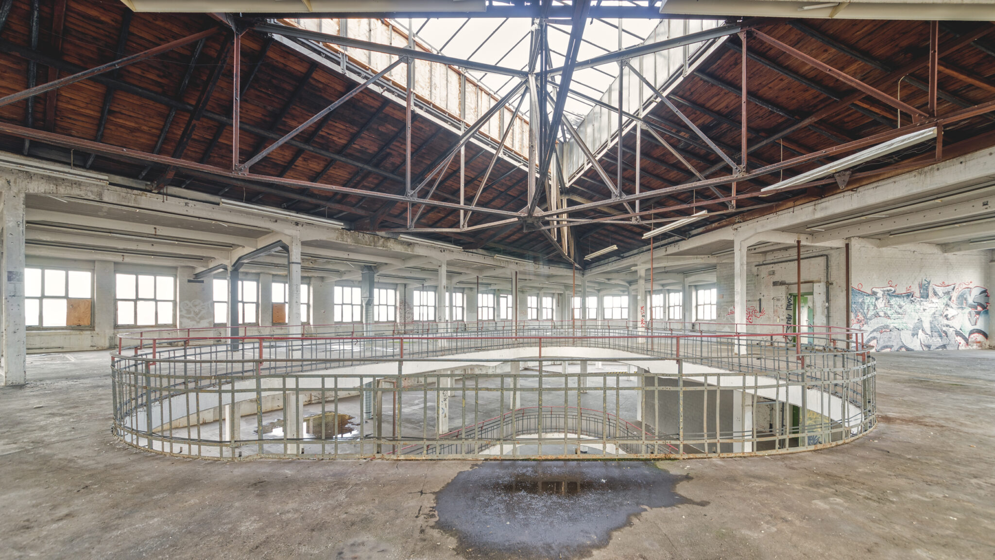 Heute warten einige Gebäudekomplexe auf eine neue Nutzung. Darunter auch der eckige Rundbau aus den Jahren 1909/1910, der mittlerweile unter Denkmalschutz steht. Ein Meisterwerk der Architektur mit einem Dachstuhl aus Gusseisen und Holzversatz – das letzte seiner Art im Industriebereich.