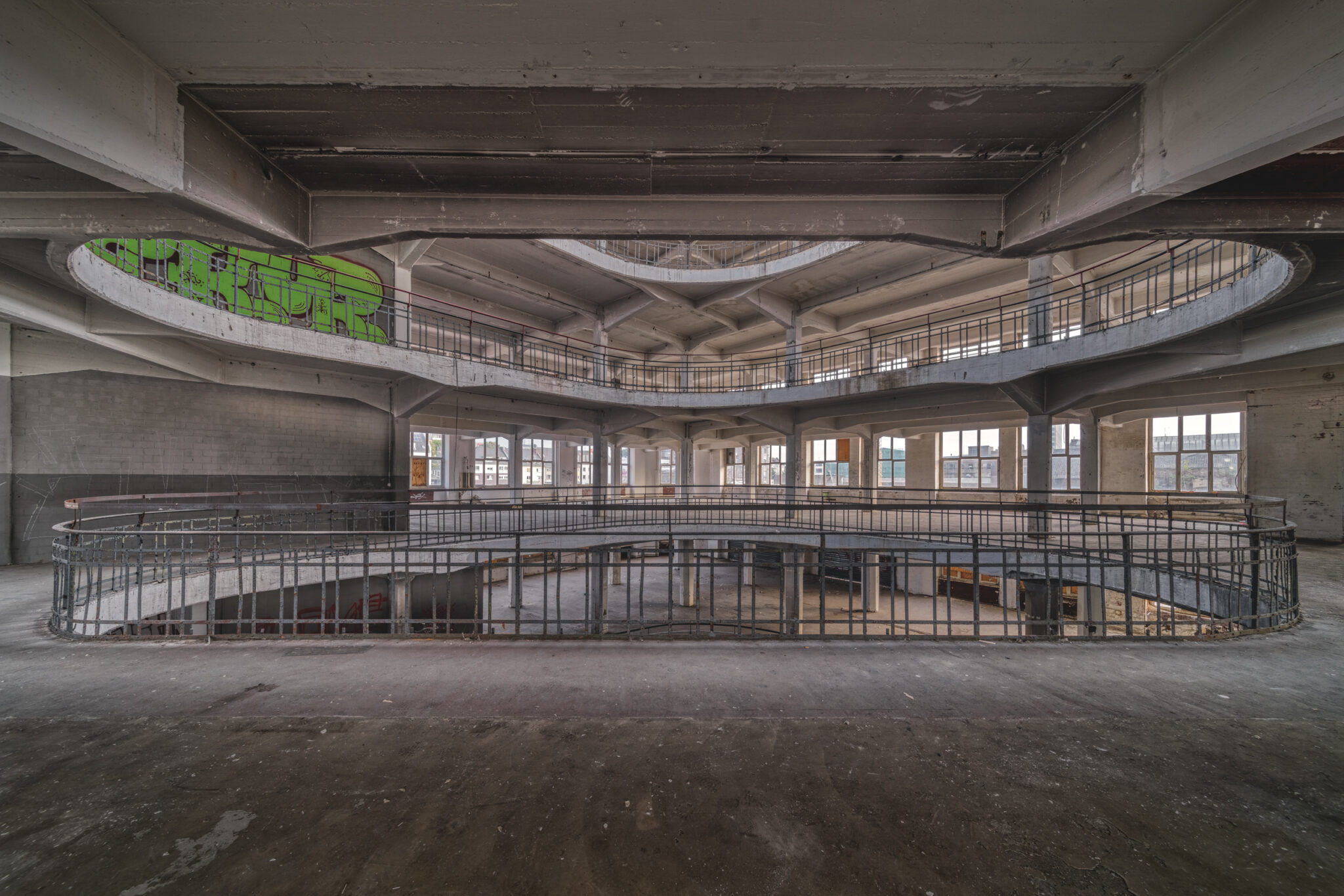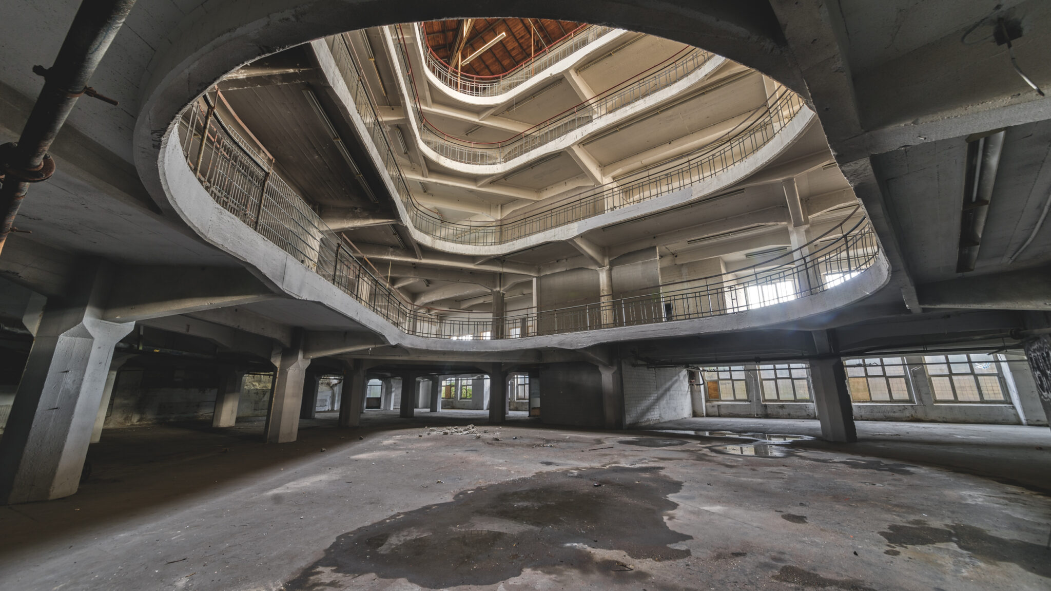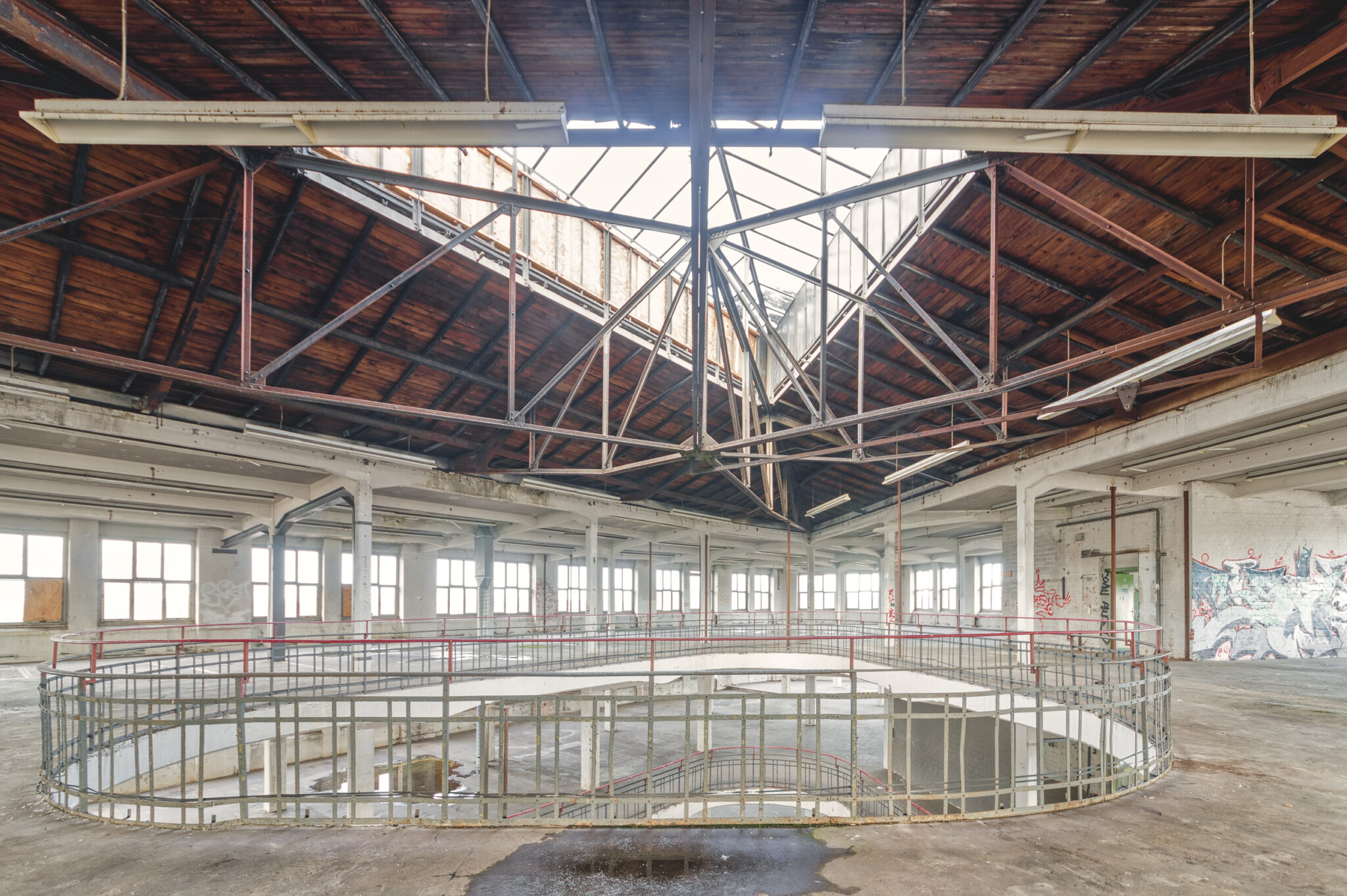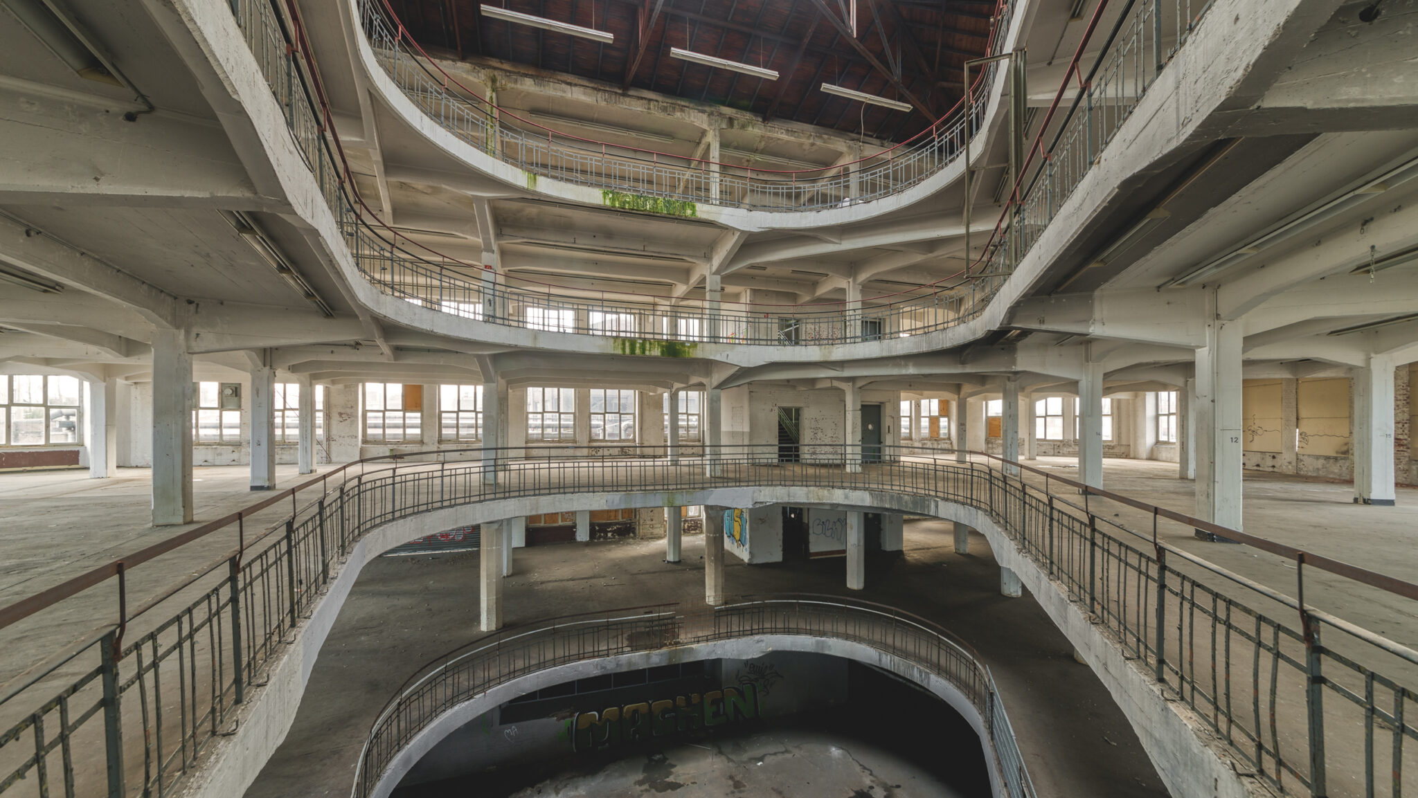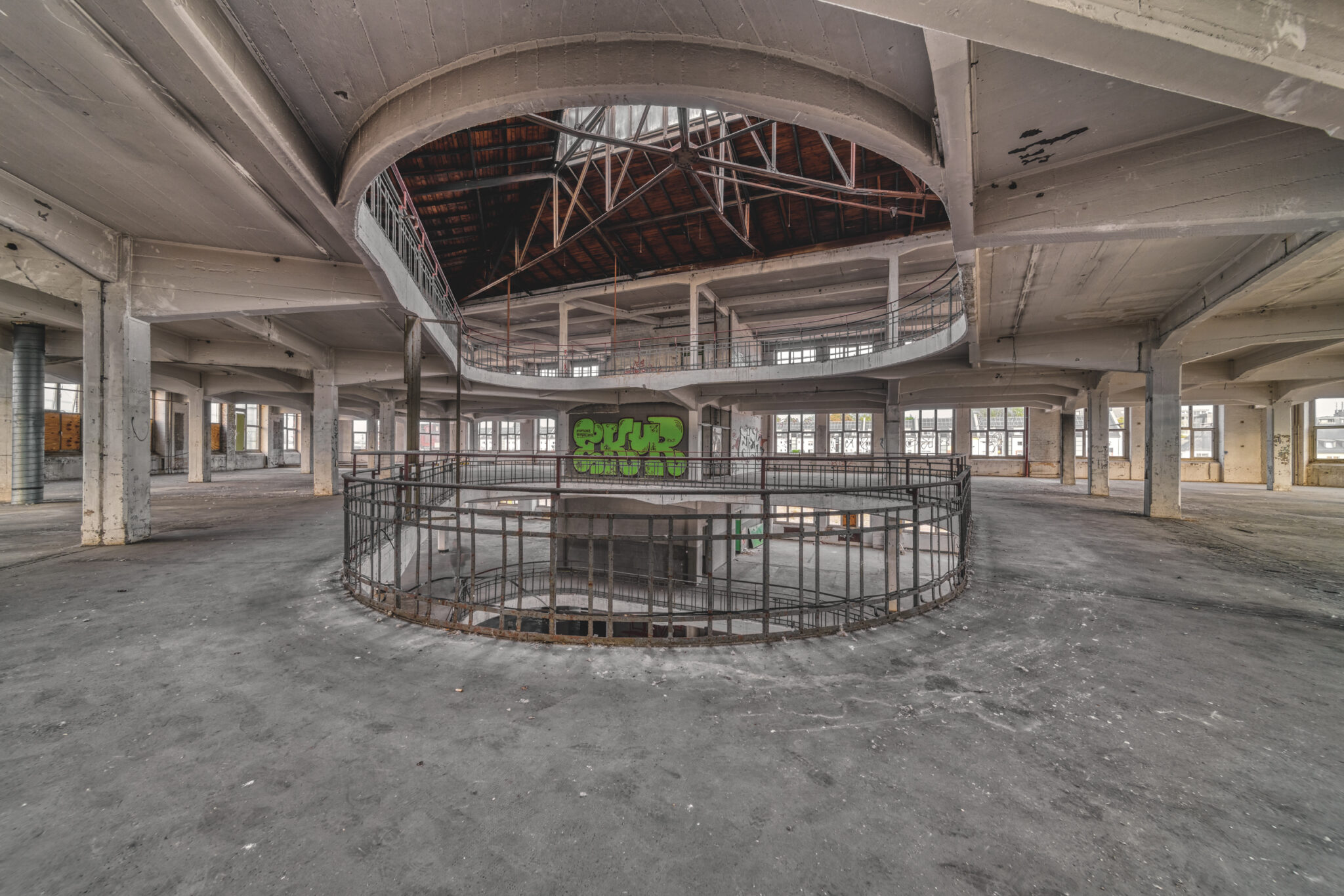 Heute warten einige Gebäudekomplexe auf eine neue Nutzung. Darunter auch der eckige Rundbau aus den Jahren 1909/1910, der mittlerweile unter Denkmalschutz steht. Ein Meisterwerk der Architektur mit einem Dachstuhl aus Gusseisen und Holzversatz – das letzte seiner Art im Industriebereich.