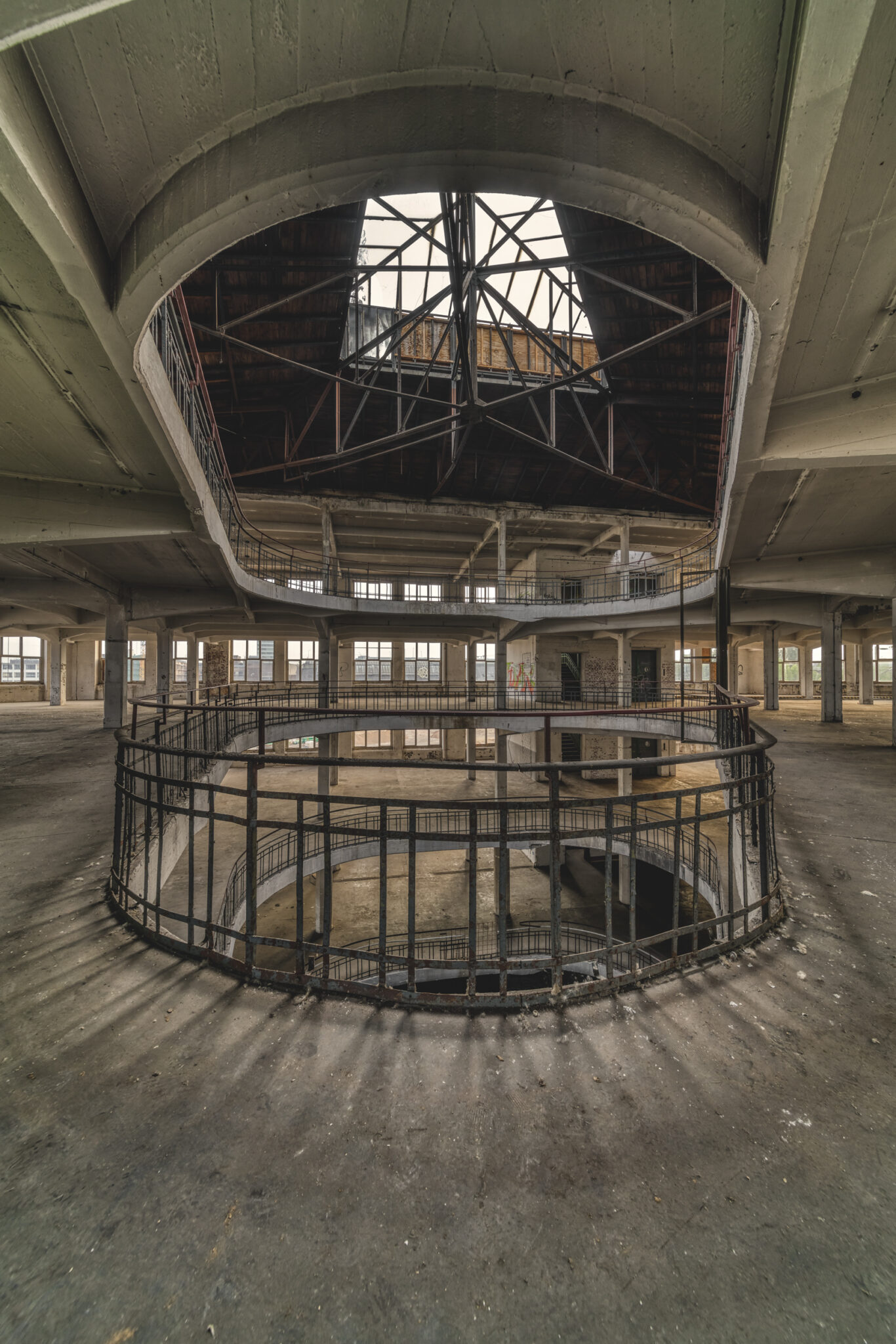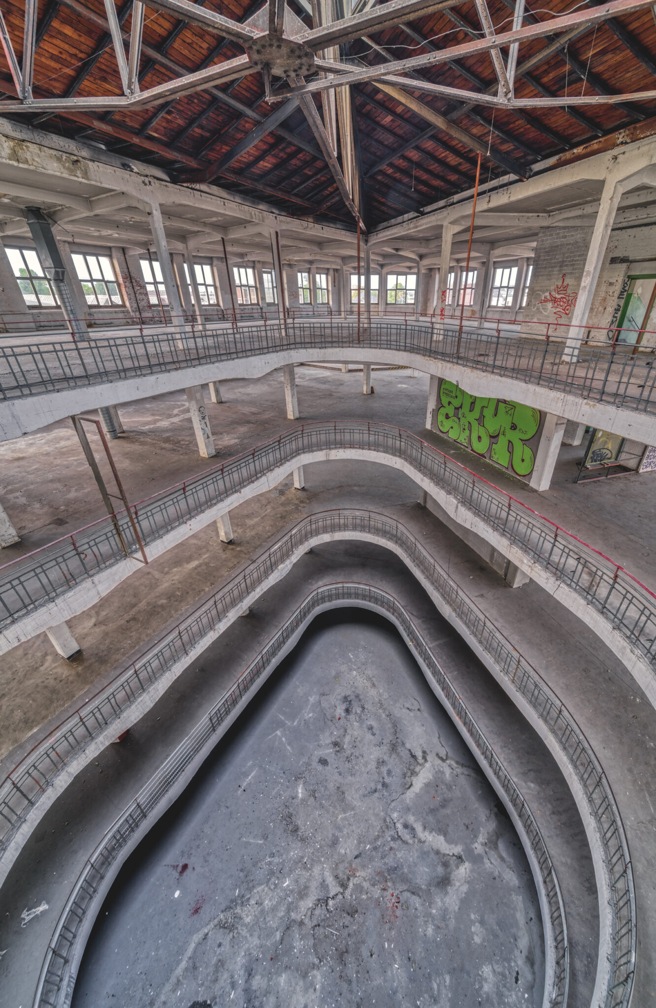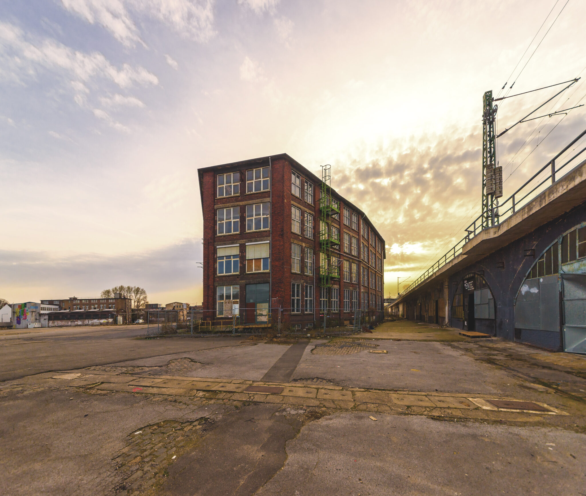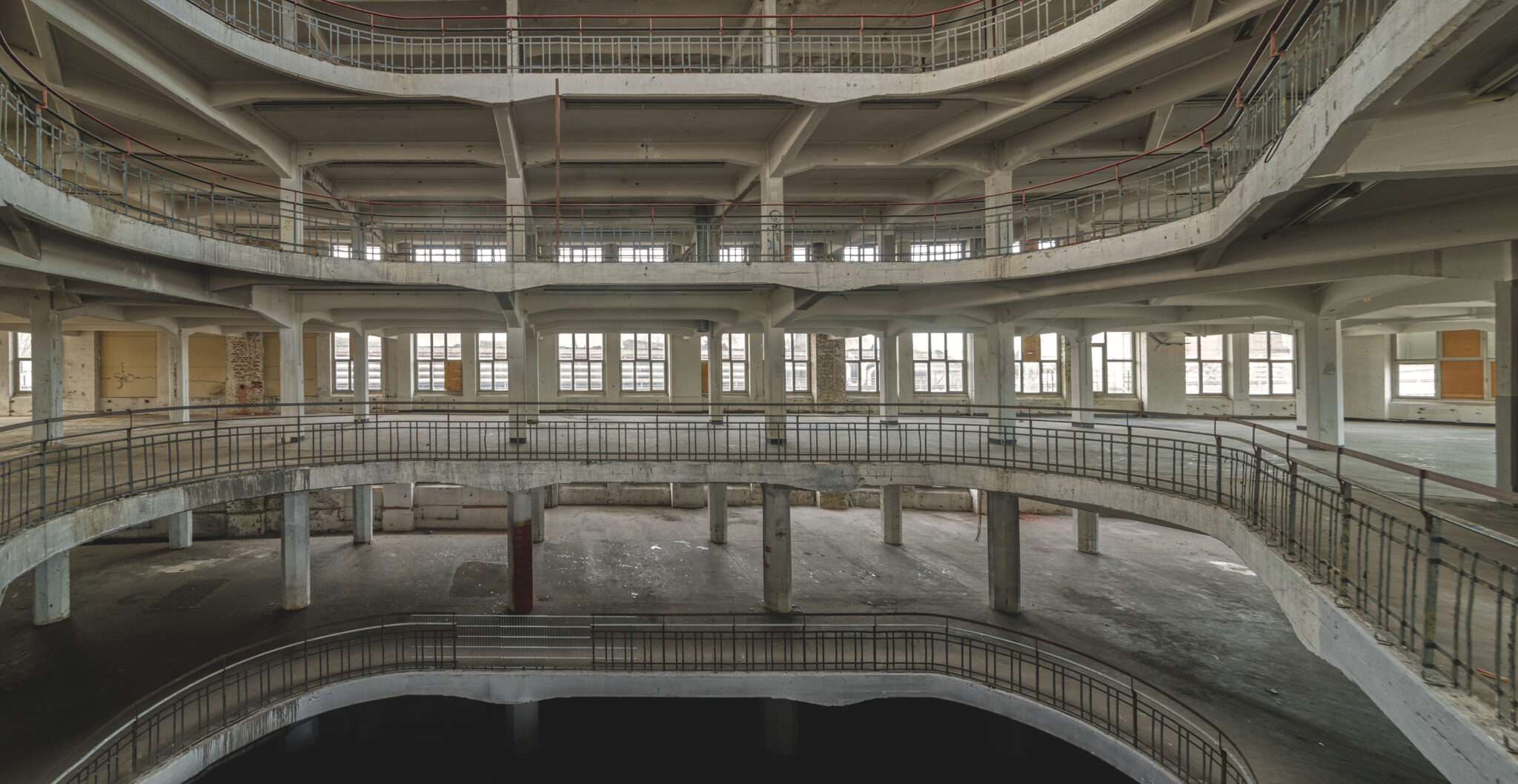 Heute warten einige Gebäudekomplexe auf eine neue Nutzung. Darunter auch der eckige Rundbau aus den Jahren 1909/1910, der mittlerweile unter Denkmalschutz steht. Ein Meisterwerk der Architektur mit einem Dachstuhl aus Gusseisen und Holzversatz – das letzte seiner Art im Industriebereich.