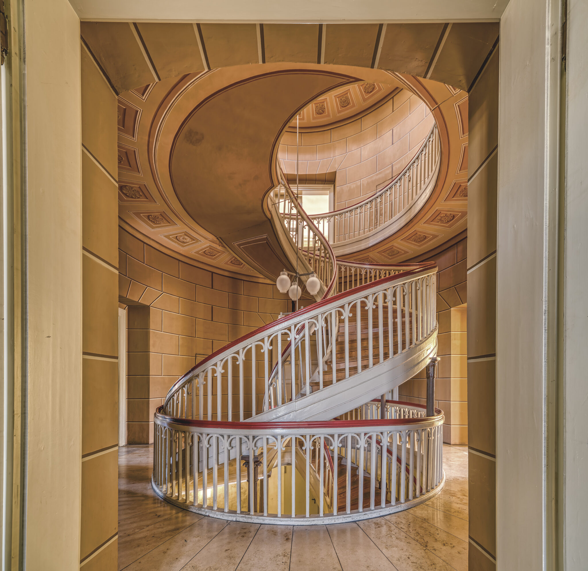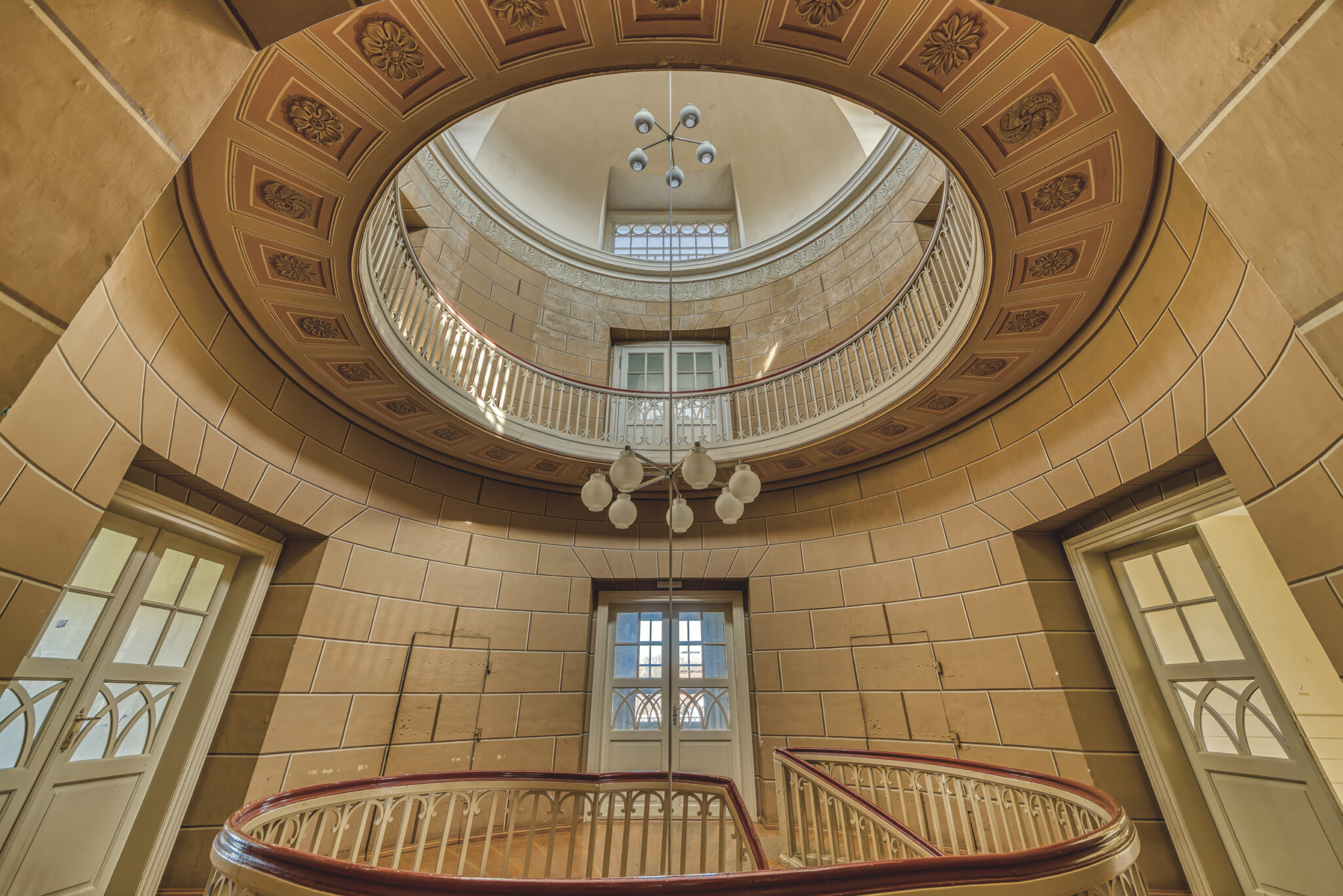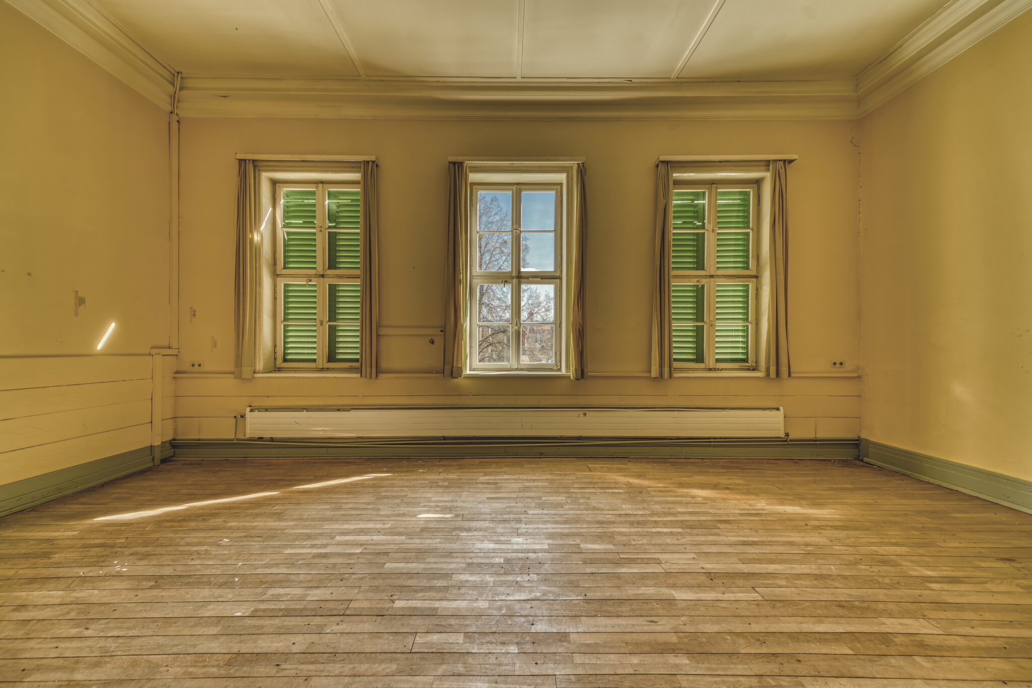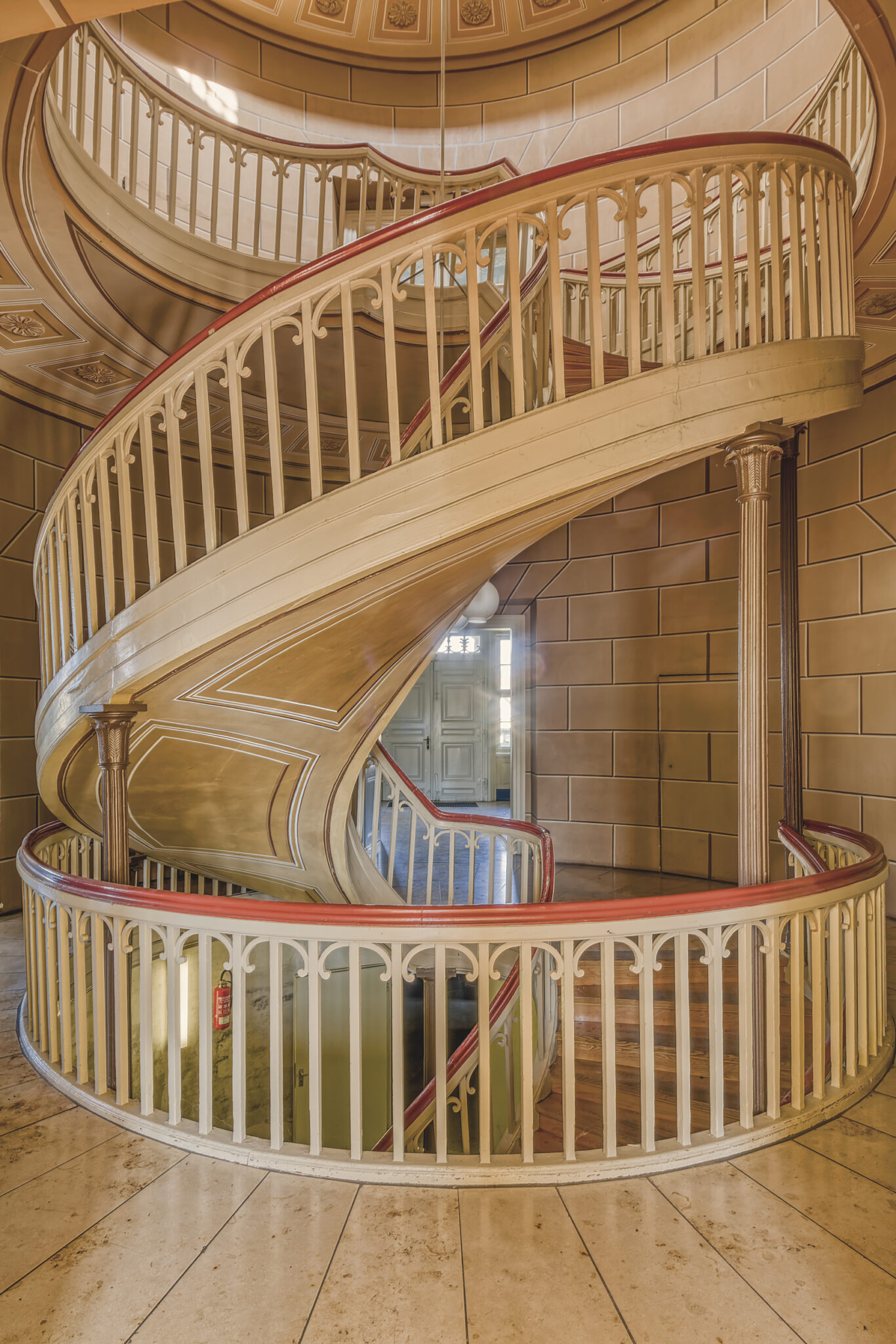Was sofort auffällt, ist die erhabene Eleganz der Architektur. Die Treppenhäuser, mit ihrer spiralförmigen Anmut, erinnern an eine vergangene Ära, in der Handwerkskunst und Ästhetik Hand in Hand gingen. Die prachtvollen Räume, einst gefüllt mit Gesprächen, Lachen und Musik, warten nun darauf, wieder mit Leben gefüllt zu werden.
