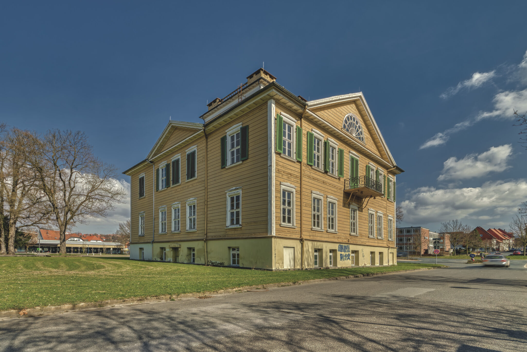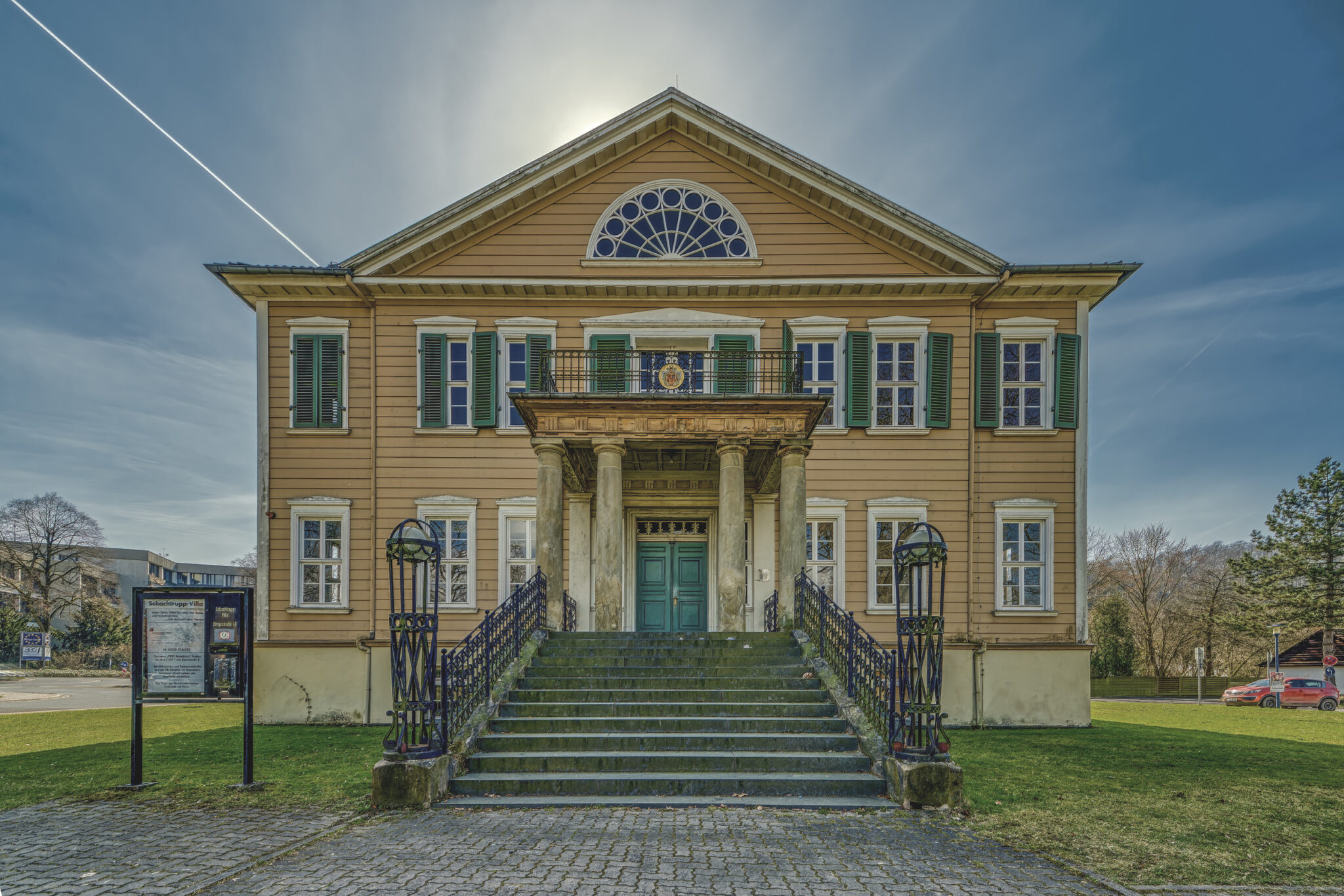 Diese Villa, einst ein strahlendes Symbol des Reichtums und des Erfolgs, steht mitten im Herzen der Stadt und erzählt eine Geschichte von Aufstieg und Stille. Der einflussreiche Unternehmer Schachtrupp wählte diesen Ort, um sich ein Zuhause zu schaffen, das sowohl seinen Status als auch seinen Einfluss in der Region widerspiegeln sollte. Doch wie so viele Monumente der Vergangenheit hat auch die Schachtrupp-Villa ihre Rolle gewandelt – vom pulsierenden Mittelpunkt des gesellschaftlichen Lebens hin zu einem stillen Zeugen der Zeit.