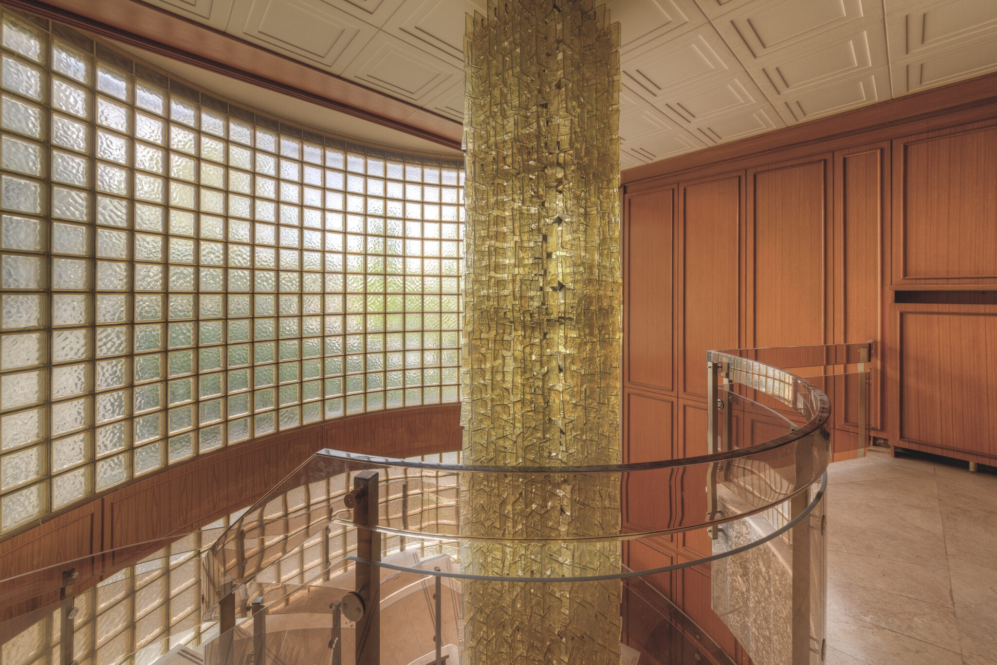 Der erste Blick in das Innere der Residenz ließ mich innehalten. Es war, als ob die Zeit hier stehen geblieben wäre. Ein majestätisches Treppenhaus, das einst Gäste und Diplomaten in Empfang nahm, war nun verstaubt und vernachlässigt. Die gläsernen Bausteine, die das Licht in das Foyer streuten, wirkten wie ein Relikt aus einer vergangenen Ära. Der prunkvolle Kronleuchter, der von der Decke hing, war ebenfalls ein stiller Zeuge der einstigen Pracht. In einem der Räume stand ein Schreibtisch, auf dem eine Schreibmaschine zurückgelassen wurde – ein Symbol der Bürokratie, die einst hier herrschte.