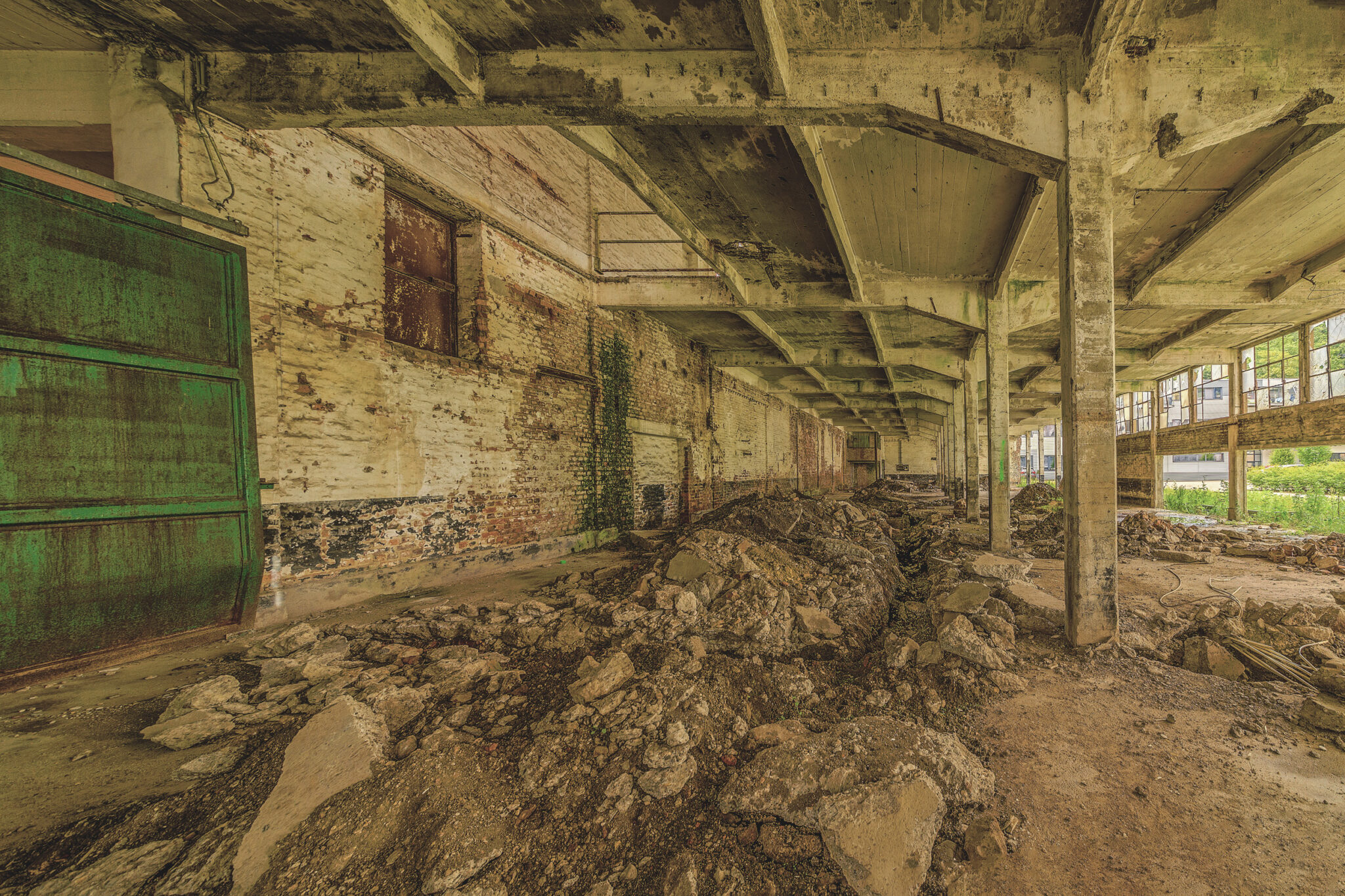 Das hintere Gelände, auf dem früher die großen Produktionshallen standen, wurde bereits planiert. Bagger und Maschinen haben das Areal für neue Bauprojekte vorbereitet, und viele der Gebäude sind verschwunden oder entkernt. Es bleibt nur noch die äußere Hülle der Fabrik – ein beeindruckendes Backsteingebäude und das gewaltige Viadukt, das sich über das Gelände erstreckt. Für das Außenmotiv hat sich die Reise dennoch gelohnt. Das Viadukt ist ein wahres Highlight, das noch immer die industrielle Kraft des Ortes symbolisiert.