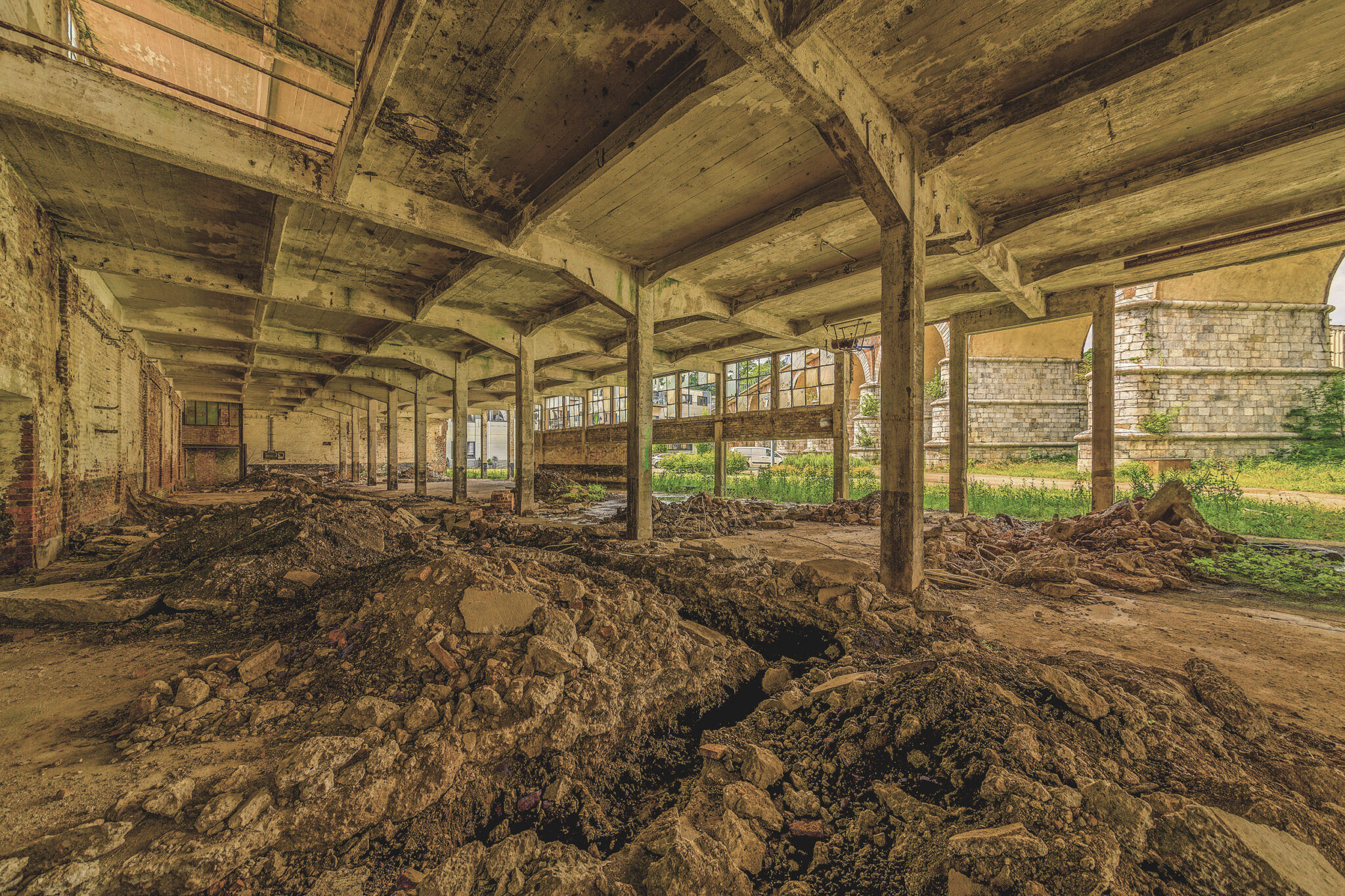 Von da an begann der langsame Verfall. Die Gebäude standen leer, und die Natur begann, sich das Gelände zurückzuerobern. Ein Teil der historischen Backsteinfassaden blieb zwar erhalten, doch die meisten der großen Hallen, die einst das industrielle Herz des Ortes waren, wurden sich selbst überlassen.