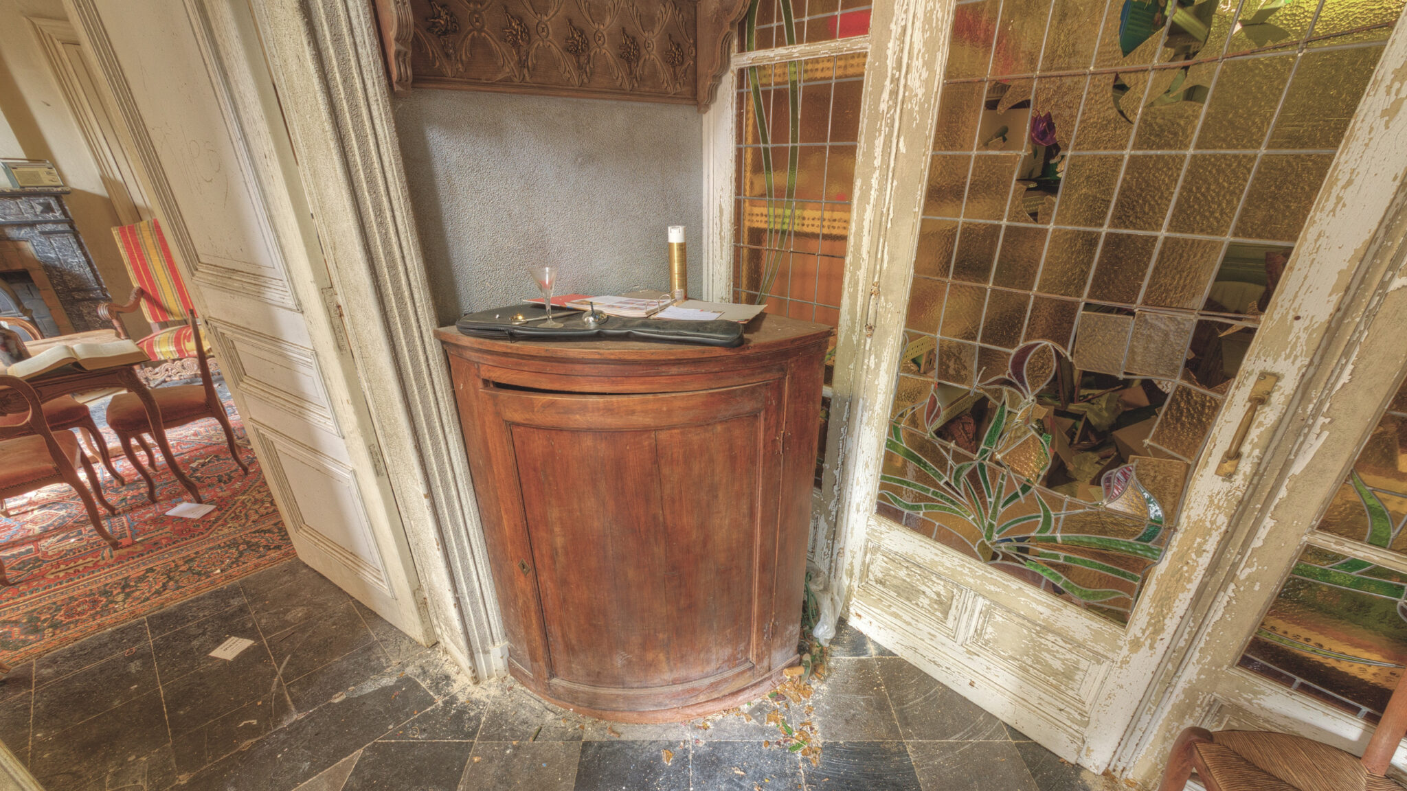 Besonders bekannt wurde die Mansion DP unter Urban Explorern durch die „Hochzeitskleid-Legende“. Der Name „Maison de la Mariée“ entstand, als an einem der Besuche ein altes Hochzeitskleid in einem der oberen Räume gefunden wurde. Dieses Kleid, das lange Zeit in einer Ecke des Schlafzimmers hing, erzählte von einer längst vergangenen Hochzeit, die hier vielleicht einmal stattgefunden hatte. Leider war das Kleid bei meinem Besuch nicht mehr zu sehen, doch die Vorstellung, dass ein so persönlicher Gegenstand hier über Jahre hinweg unangetastet blieb, verstärkte nur die mystische Aura des Ortes.