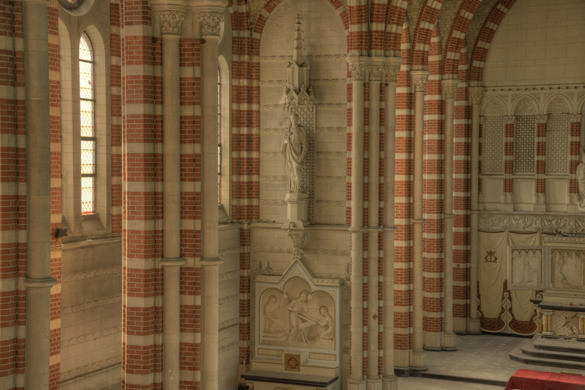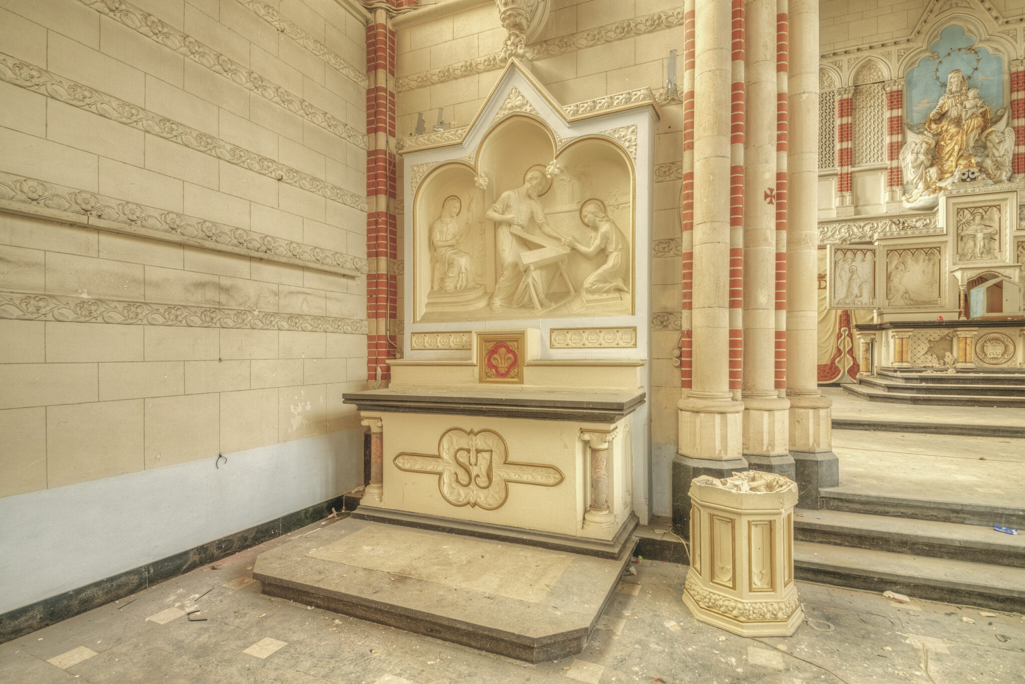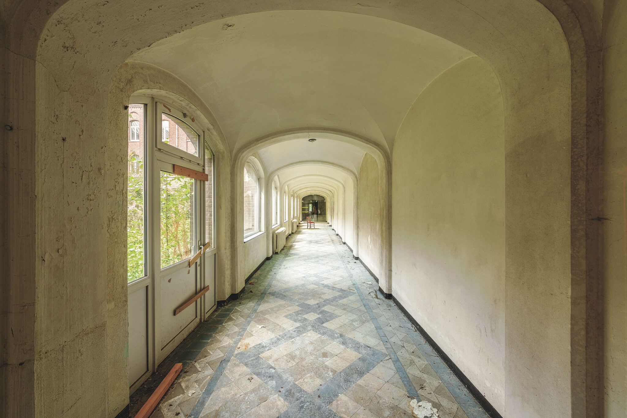 Der erste Eindruck war überwältigend. Die Kombination aus dem neugotischen Baustil und den Spuren der Zeit verlieh dem Kloster eine fast sakrale Atmosphäre. Die roten und weißen Sandsteinmauern, die hohen Gewölbe und die detaillierten Verzierungen ließen die Pracht erahnen, die dieses Gebäude einst ausgestrahlt haben muss. Im Inneren des Klosters herrschte eine greifbare Stille, nur ab und zu unterbrochen vom Knistern zerfallender Strukturen oder dem leisen Rascheln der Natur, die sich langsam ihren Weg in die einst heiligen Hallen bahnte.