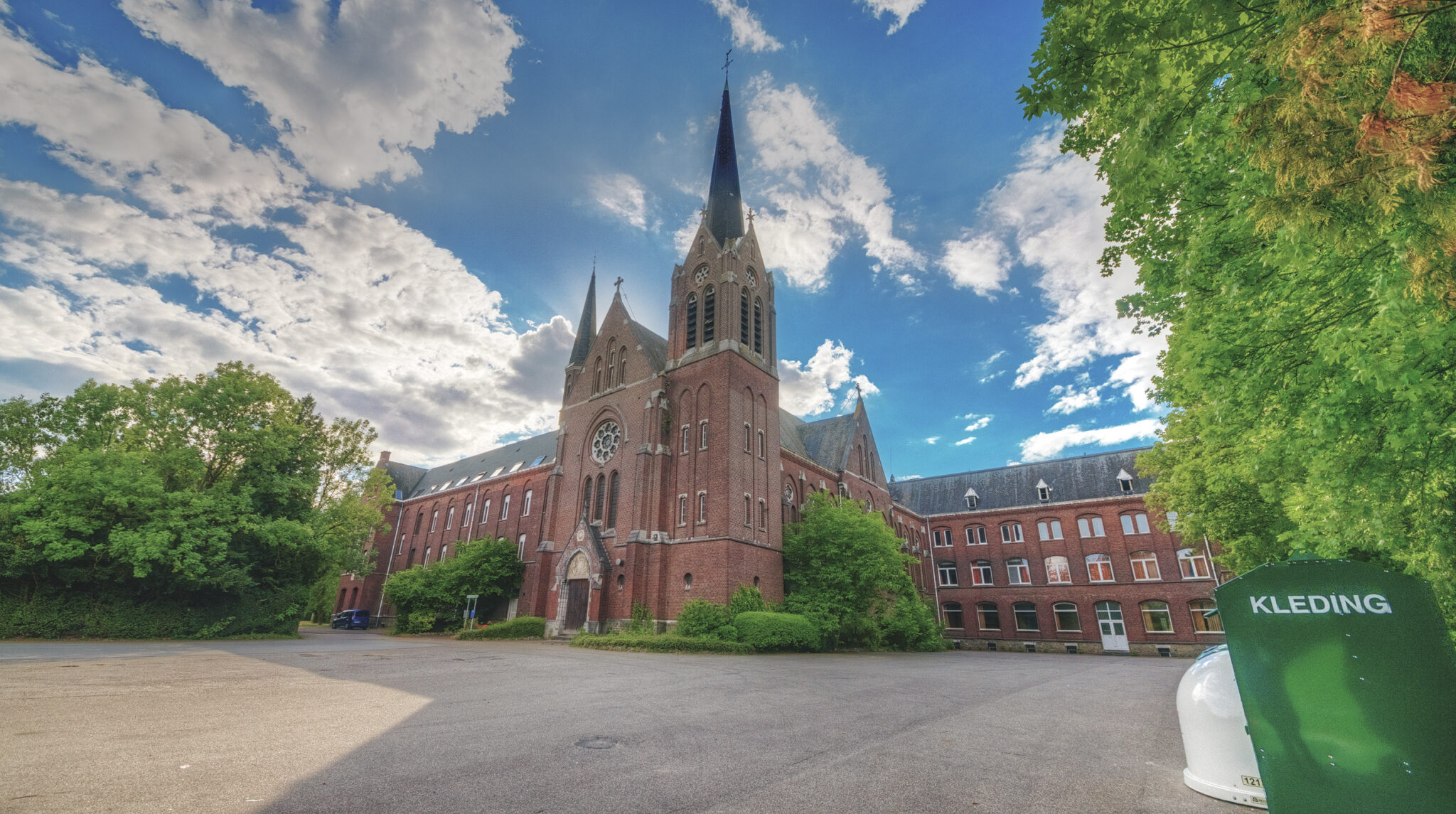 Die Kirche des Klosters, die „Unsere Liebe Frau von Carmel“ gewidmet ist, ist ein beeindruckendes Beispiel neugotischer Architektur. Entworfen von einem Brüsseler Architekten, besticht sie durch ihre drei Schiffe, die in fünf Travéen unterteilt sind, und die prächtigen Glasfenster, die die Kirchenhalle in ein warmes Licht tauchen. Im Laufe der Jahre wurden die Kunstwerke und das Mobiliar der Kirche, einschließlich der berühmten Kreuzwegstationen von Tony van Os, Opfer von Diebstahl und Vandalismus.