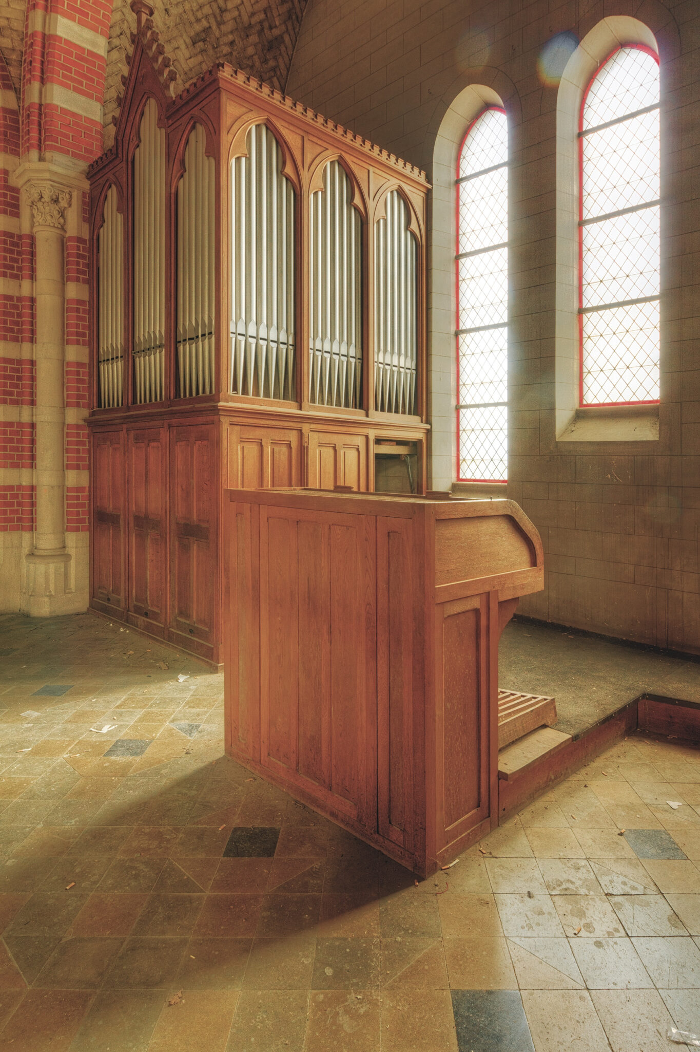 Besonders beeindruckend war die Kapelle, die trotz ihres Verfalls noch immer majestätisch wirkte. Die Orgel, die im Hintergrund stand, erzählte von Zeiten, in denen hier Gottesdienste abgehalten wurden. Die Bänke, auf denen einst Gläubige saßen, sind jetzt von einer dicken Staubschicht bedeckt. Das Licht, das durch die bunten Glasfenster fiel, erzeugte ein Farbenspiel auf dem Boden, das den Raum in ein fast mystisches Licht tauchte.