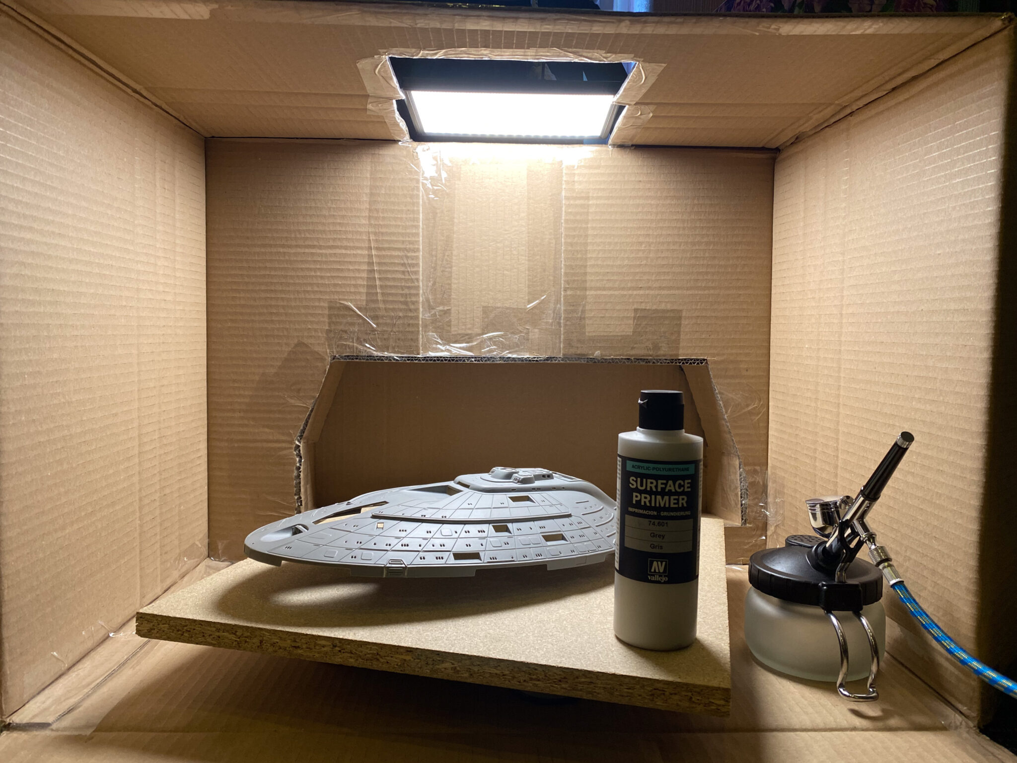 Ein Highlight des Modells sollte eigentlich die Beleuchtung sein, für die ich SMD-LEDs verwenden wollte. Die Idee war, das Modell so zu beleuchten, dass es den Eindruck erweckt, als würde es tatsächlich durch den Weltraum gleiten. Leider stieß ich dabei auf unerwartete Probleme: Eine der LEDs versagte, und es war mir nicht möglich, sie zu ersetzen, ohne das bereits weit fortgeschrittene Modell zu beschädigen. Schweren Herzens entschied ich mich, das Beleuchtungsprojekt aufzugeben und mich stattdessen auf die Detaillierung und Bemalung zu konzentrieren. Diese Entscheidung war zwar frustrierend, doch sie ermöglichte es mir, meine Fähigkeiten in anderen Bereichen zu verfeinern.