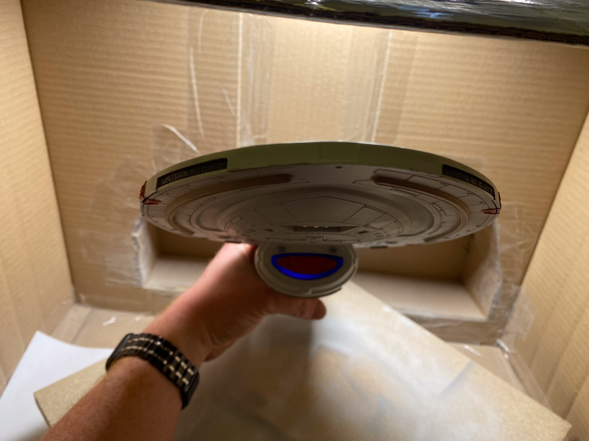 Nach fünf Monaten harter Arbeit hängt die U.S.S. Voyager nun in all ihrer Pracht im Zimmer meines Sohnes und erinnert mich an die Freuden und Herausforderungen des Modellbaus. Dieses Projekt war mehr als nur der Bau eines Modells; es war eine Reise in die Vergangenheit, eine Wiederentdeckung eines alten Hobbys und ein Beweis dafür, dass Geduld und Hingabe zu großartigen Ergebnissen führen können. Auch wenn nicht alles nach Plan verlief, bin ich stolz auf das Endergebnis und freue mich darauf, das nächste Projekt in Angriff zu nehmen.